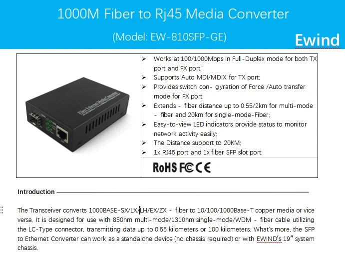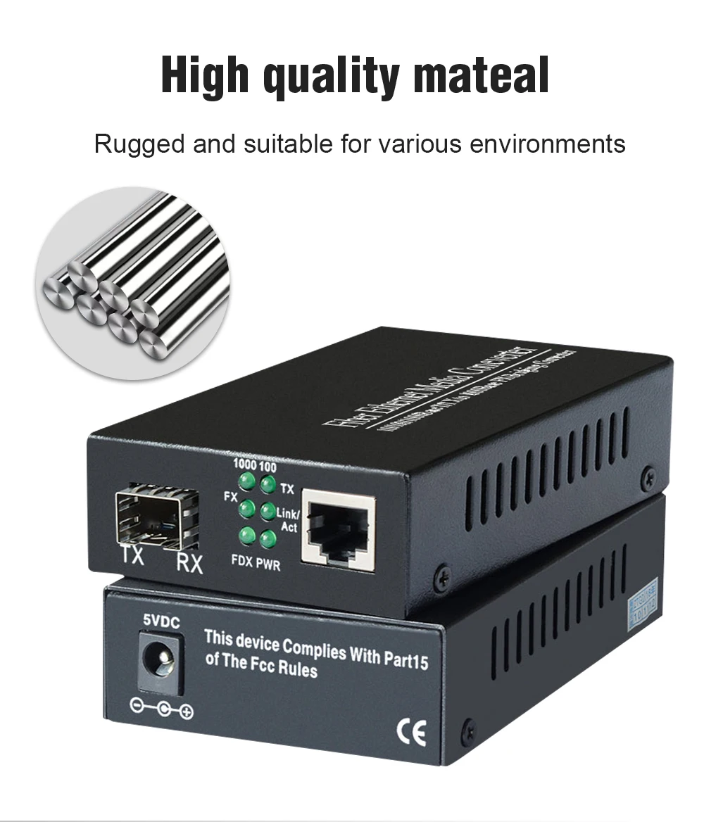 Comprar Convertidor de medios Gigabit SFP, módulo transceptor de 100/1000Mbps, Ethernet rápida sfp a rj45, convertidor ethernet, 1 interruptor SFP de fibra, 1RJ45