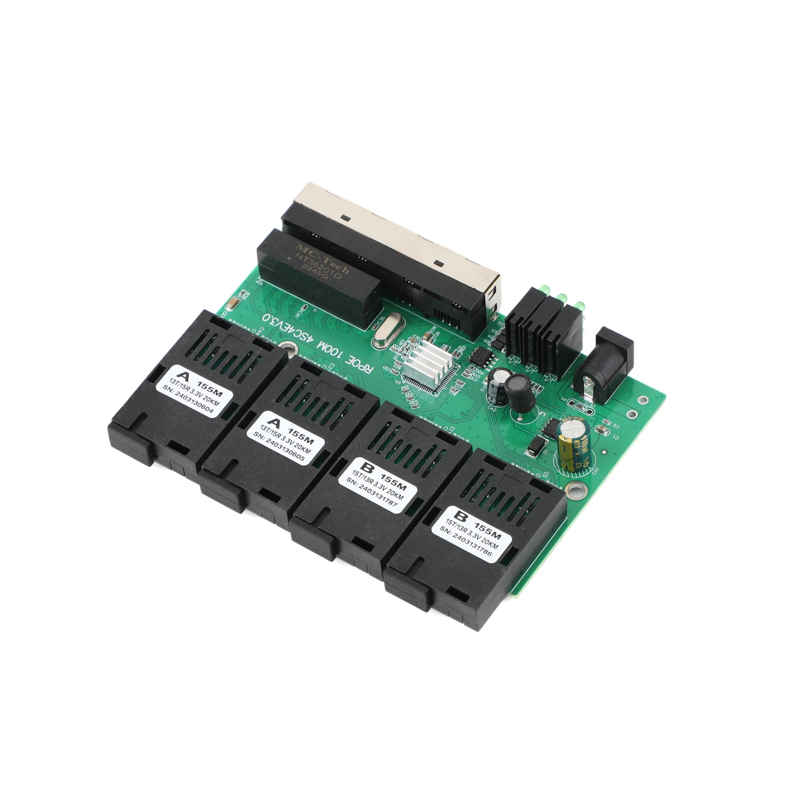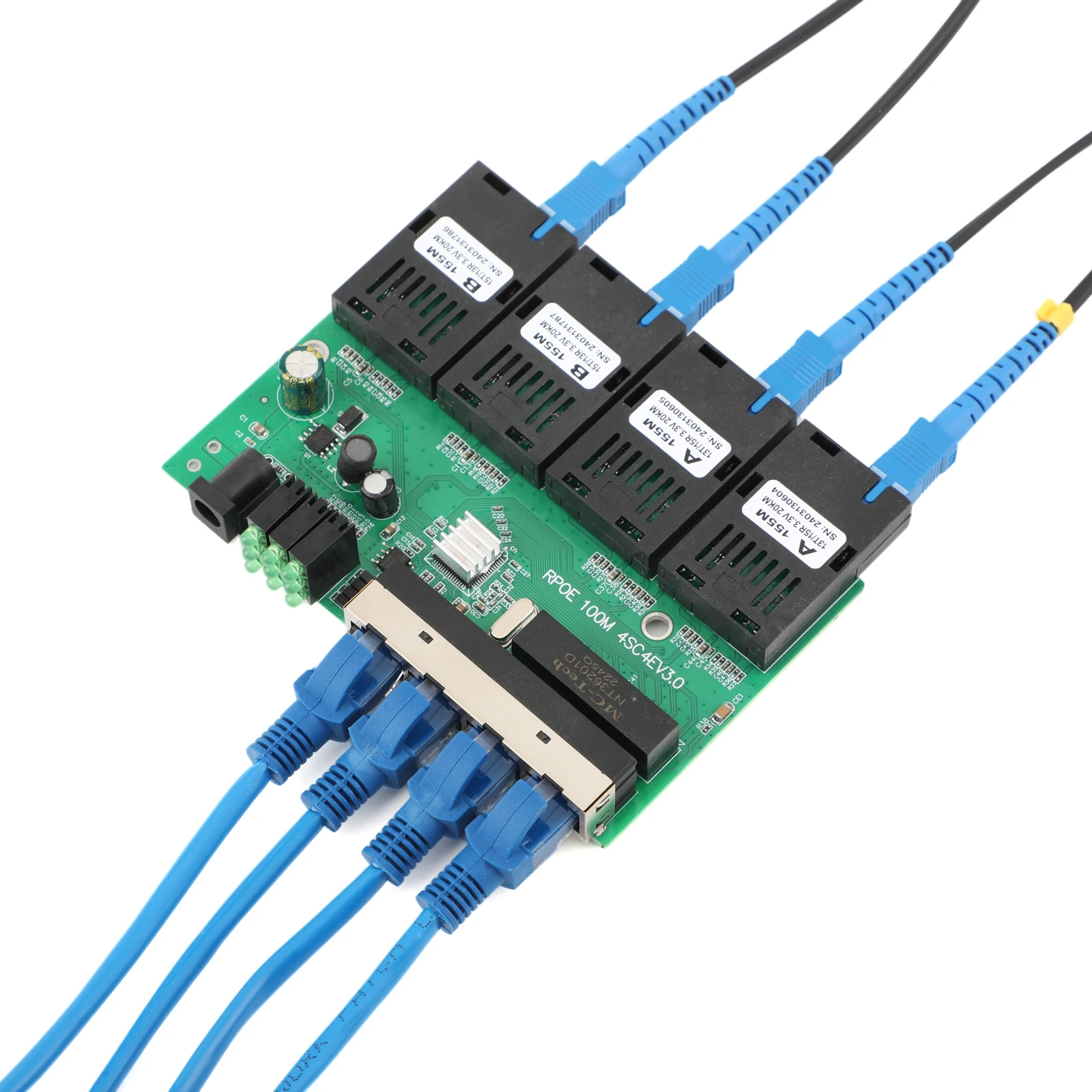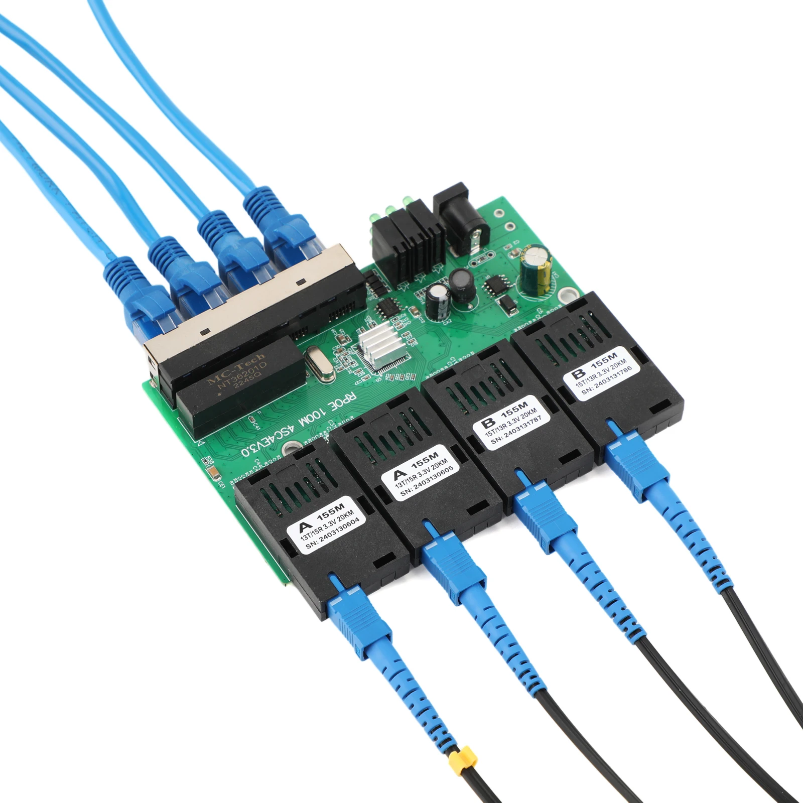 Comprar Convertidor de medios ópticos de 10M/100M, 4RJ45 a 4SC 2A + 2B, conector de fibra óptica, placa PCBA, puertos de 1310nm/1550nm, interruptor POE Ethernet de 20KM