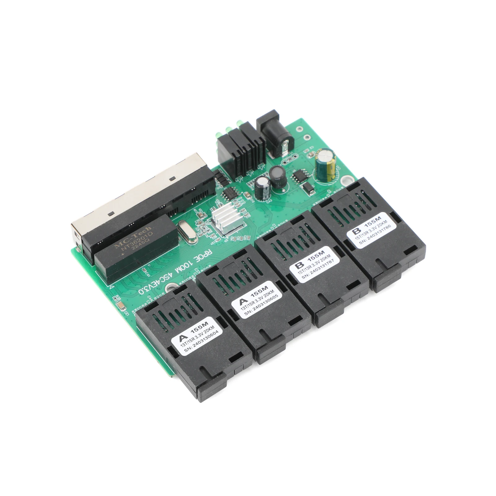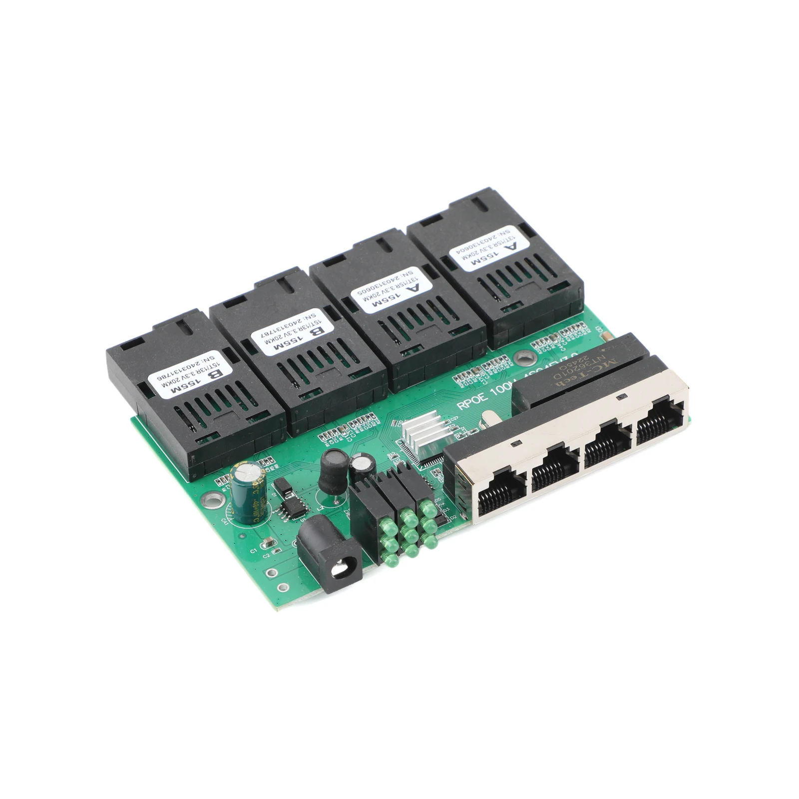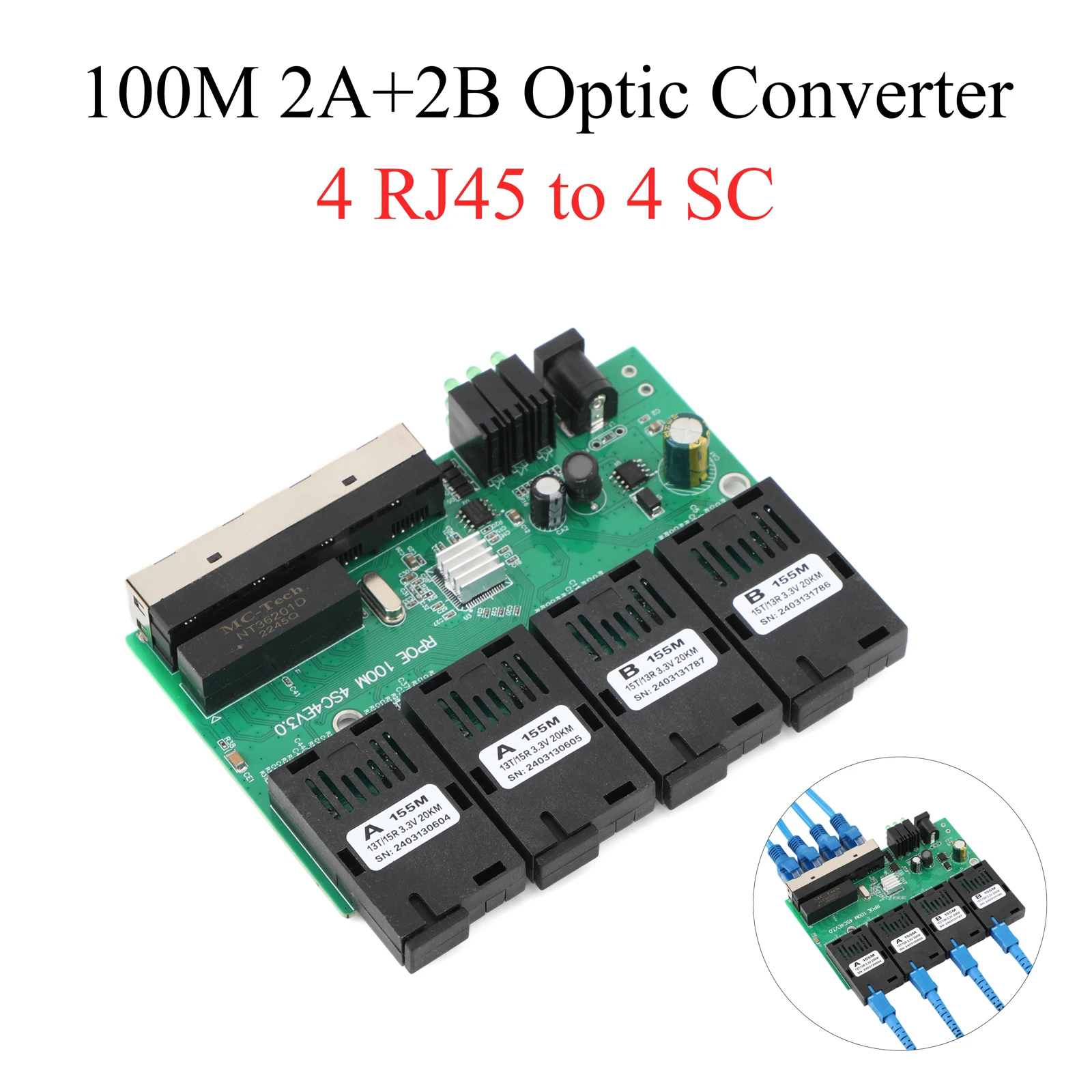 Comprar Convertidor de medios ópticos de 10M/100M, 4RJ45 a 4SC 2A + 2B, conector de fibra óptica, placa PCBA, puertos de 1310nm/1550nm, interruptor POE Ethernet de 20KM
