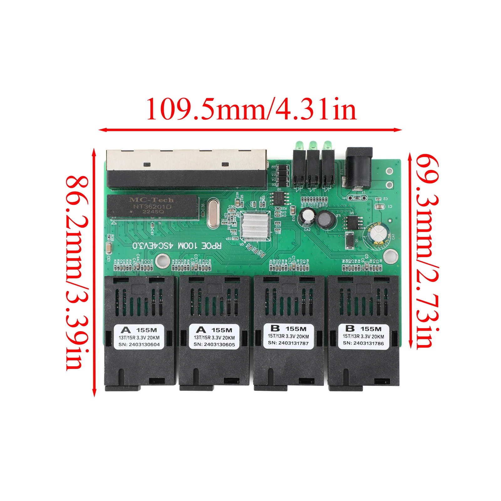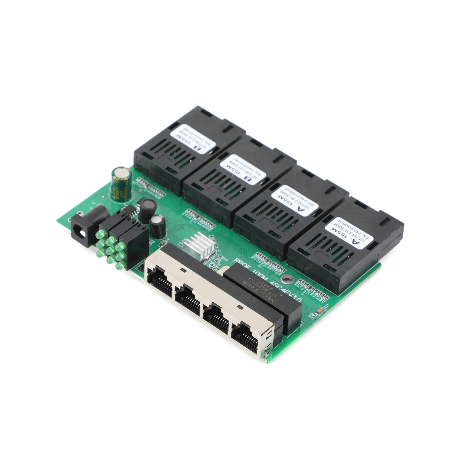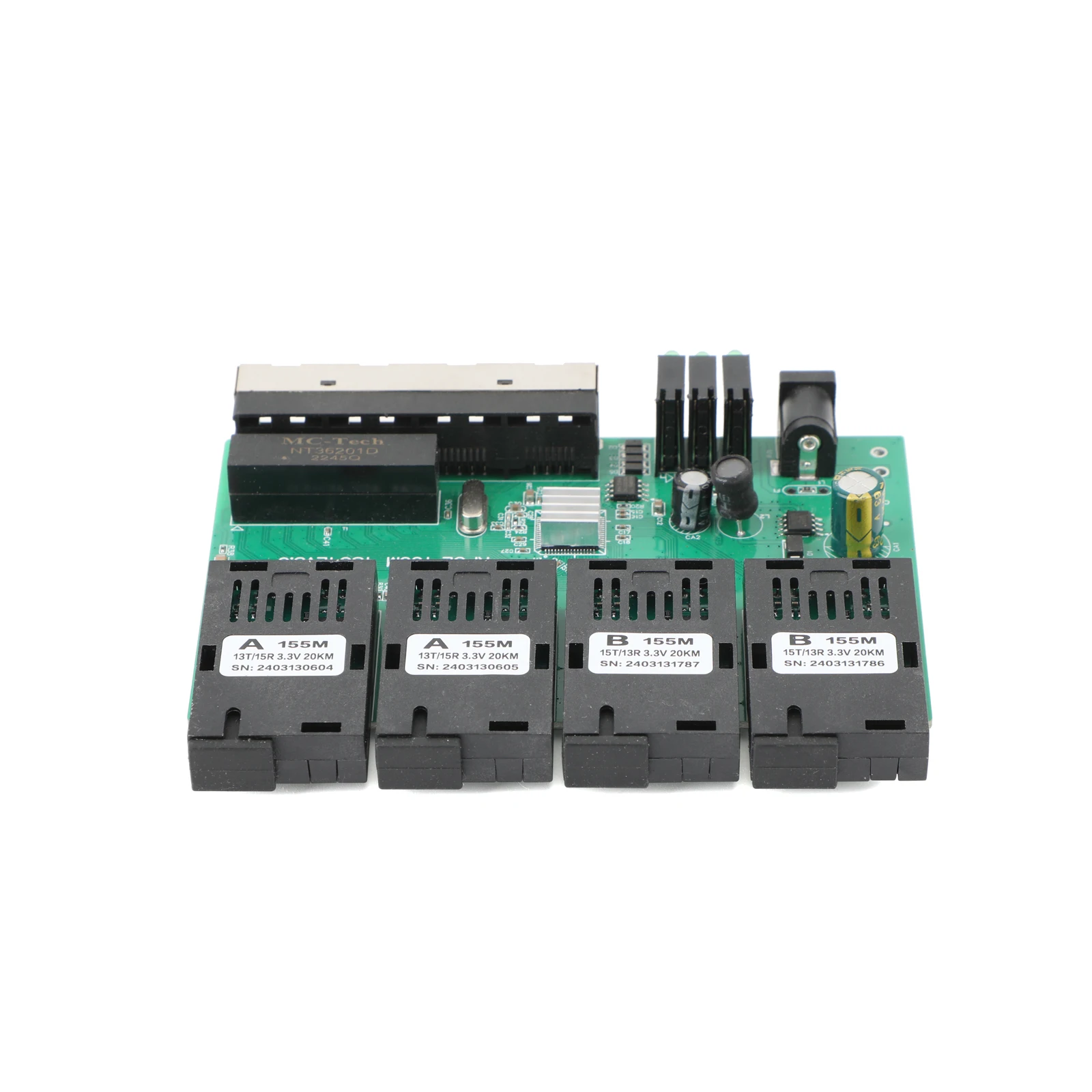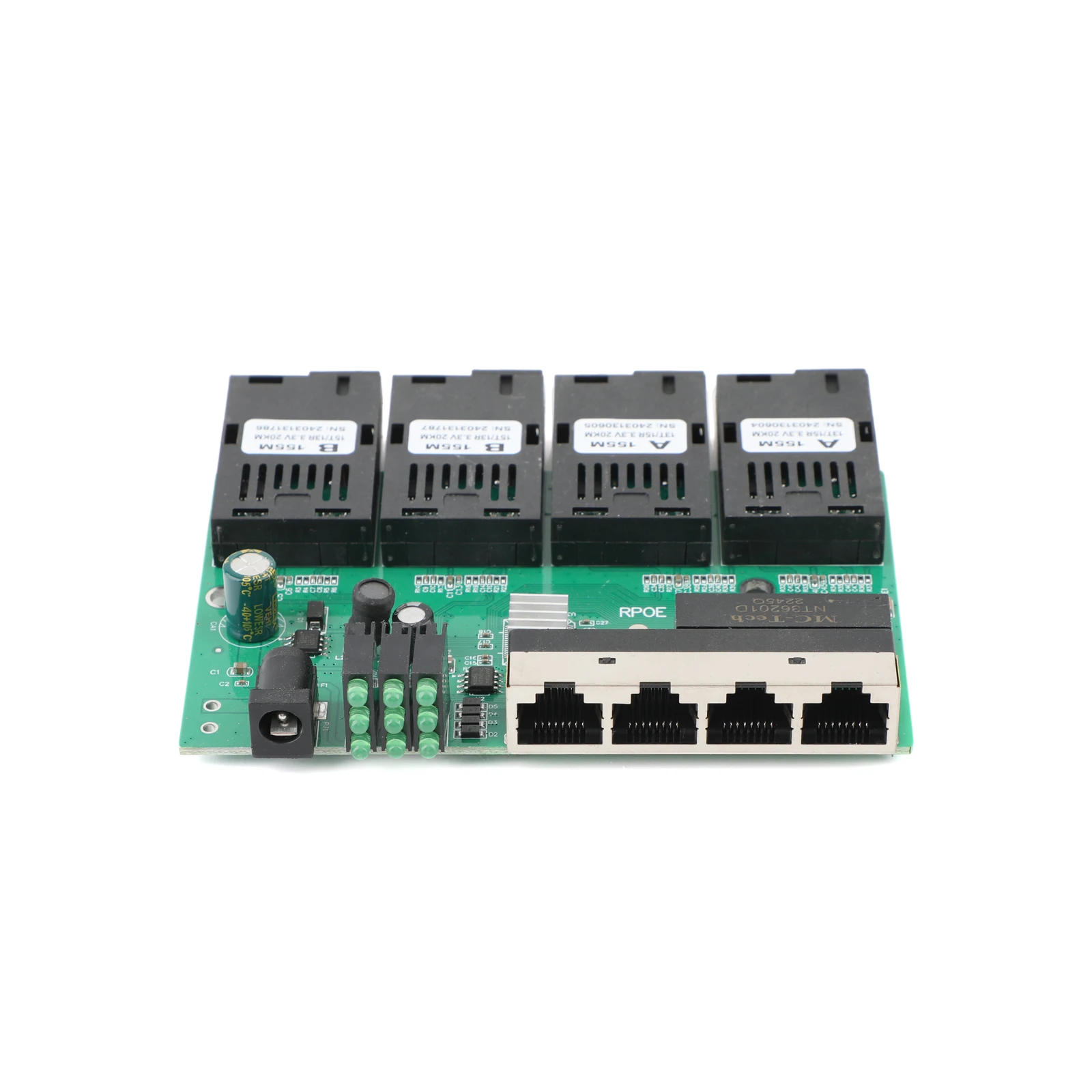 Convertidor de medios ópticos de 10M/100M 4RJ45 a 4SC 2A + 2B Conector de fibra óptica Placa PCBA Puertos de 1310nm/1550nm Interruptor POE Ethernet de 20KM