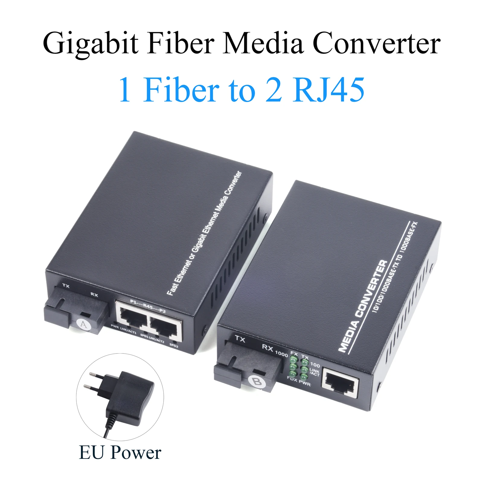 1 par convertidor de medios ópticos de fibra Gigabit 10/100/1000M modo único 1 fibra a 2 RJ45 UPC/APC SC-Port con cable de fibra para exteriores