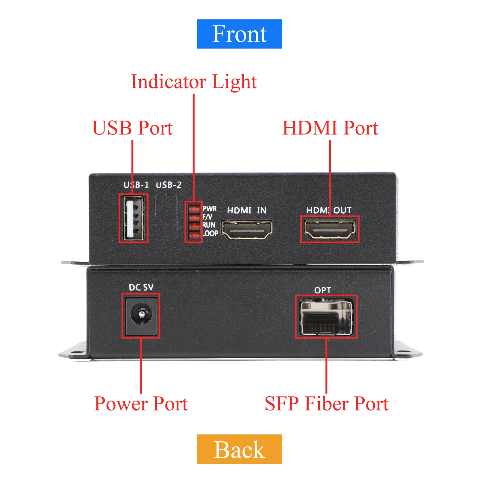 3.Con una calidad de imagen casi sin pérdidas y una baja latencia de aproximadamente 60 ms, la transmisión de cables ópticos y el blindaje de señales electromagnéticas mediante la carcasa de aleación de aluminio hacen que la transmisión de la señal sea más suave y estable.