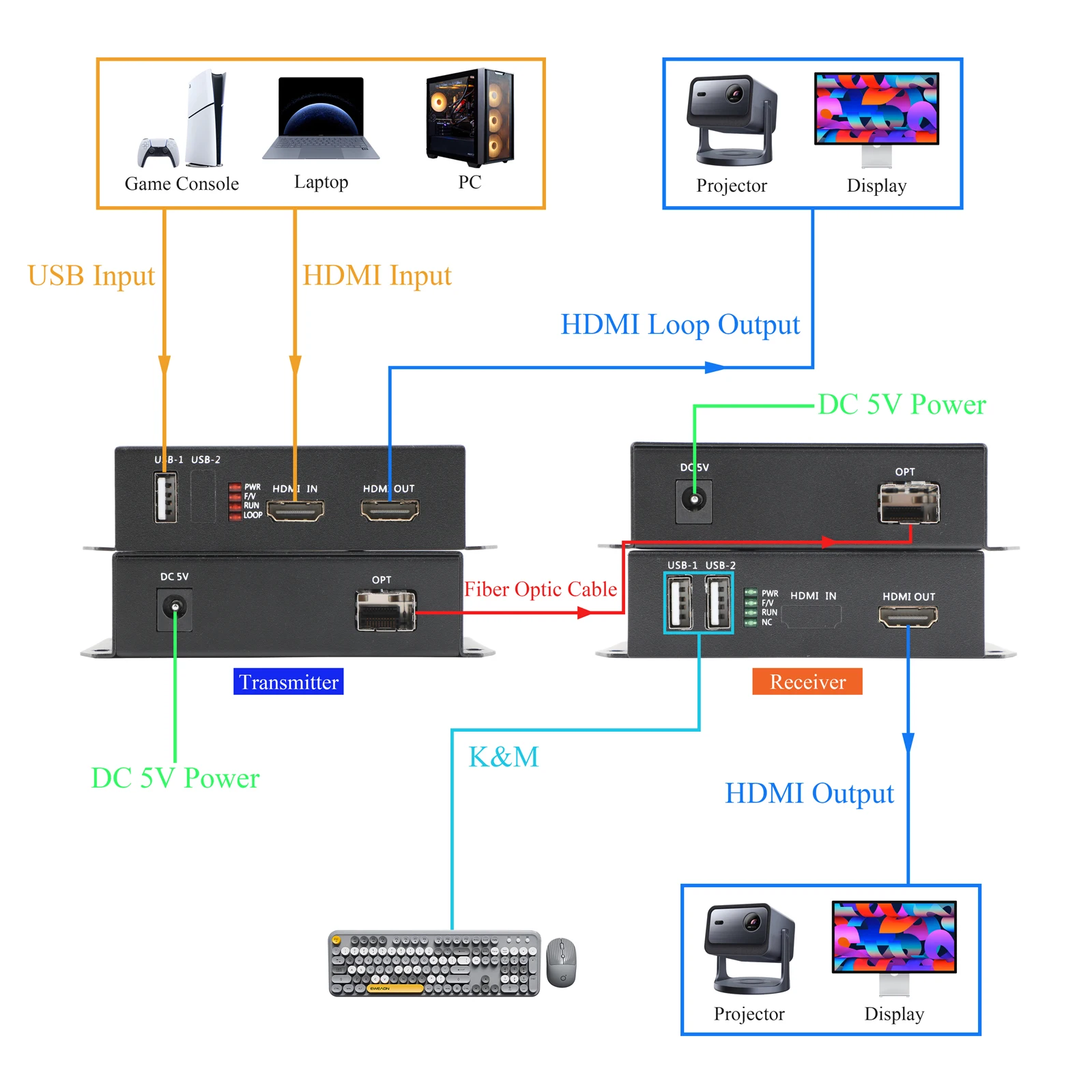 Transceptor óptico KVM HDMI 4K