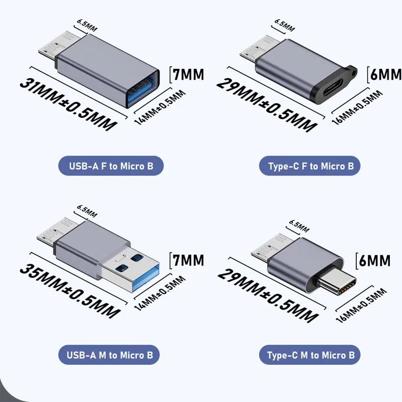 Convertidor Micro B a Tipo C USB C hembra USB-A hembra macho para HDD SSD Adaptador de transferencia de datos de disco duro externo para teléfono Banco de energía Dongle de enchufe de carga