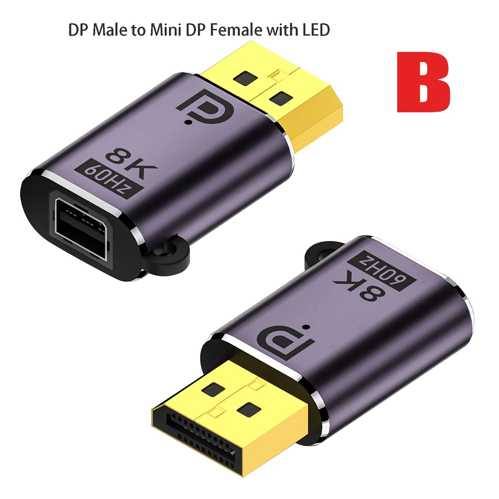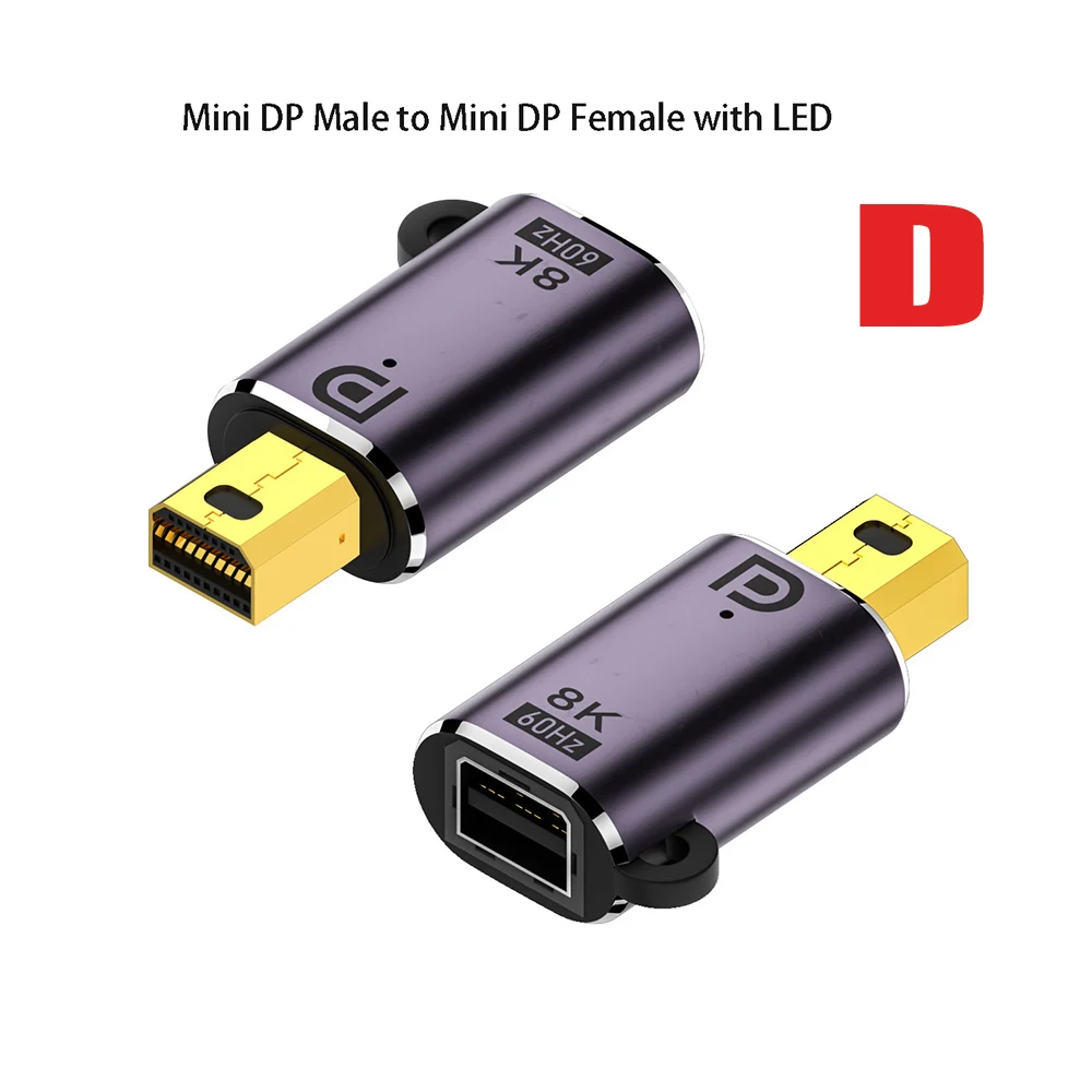 Comprar Convertidor Mini DP a DP grande, adaptador de conversión bidireccional macho a hembra, puerto de pantalla, Video, Audio, Cable de extensión, enchufe, 8K60HZ