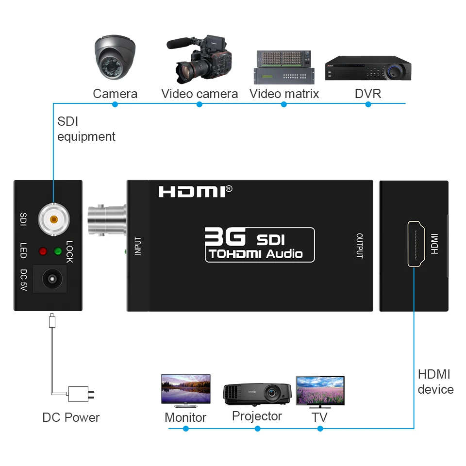 Comprar Convertidor Mini HD 3G SDI a HDMI, adaptador compatible con HD-SDI/3G-SDI, señales que se muestran en la pantalla HDMI, envío gratis