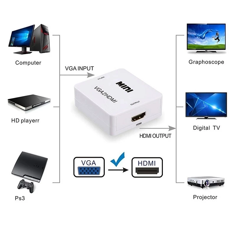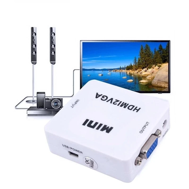Comprar Convertidor Mini VGA a HDMI con Audio VGA2HDMI 1080P conector adaptador para proyector PC portátil a HDTV con cable usb