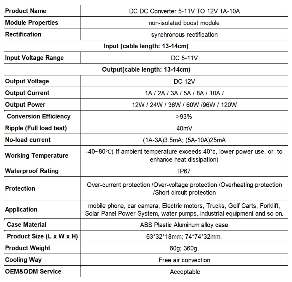 Convertidor de Potencia DC-DC de 5-11V a 12V 1A 2A 3A 5A 8A 10A, Regulador de Voltaje, Transformador Elevador de Voltaje para Módulo LED de Coche