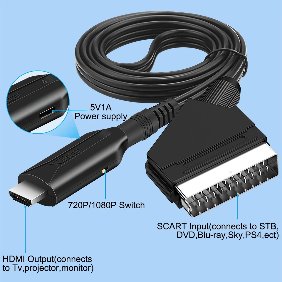 6.Tamaño mini y ligero, cómodo de llevar y usar.Nota: Admite scart CVBS, NO es compatible con scart RGB.