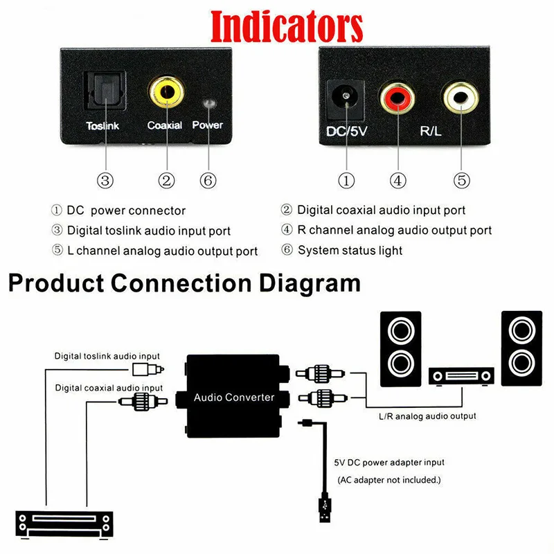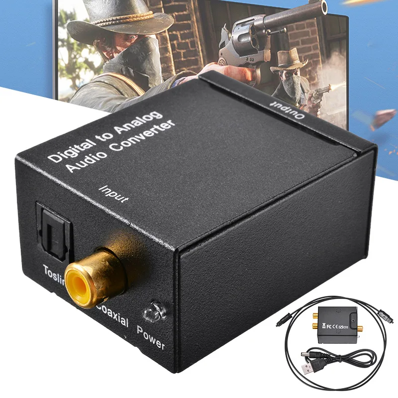 Convertidor con puerto de alimentación DC 5V, salida R/L, para entrada de audio Toslink, entrada de audio coaxial digital