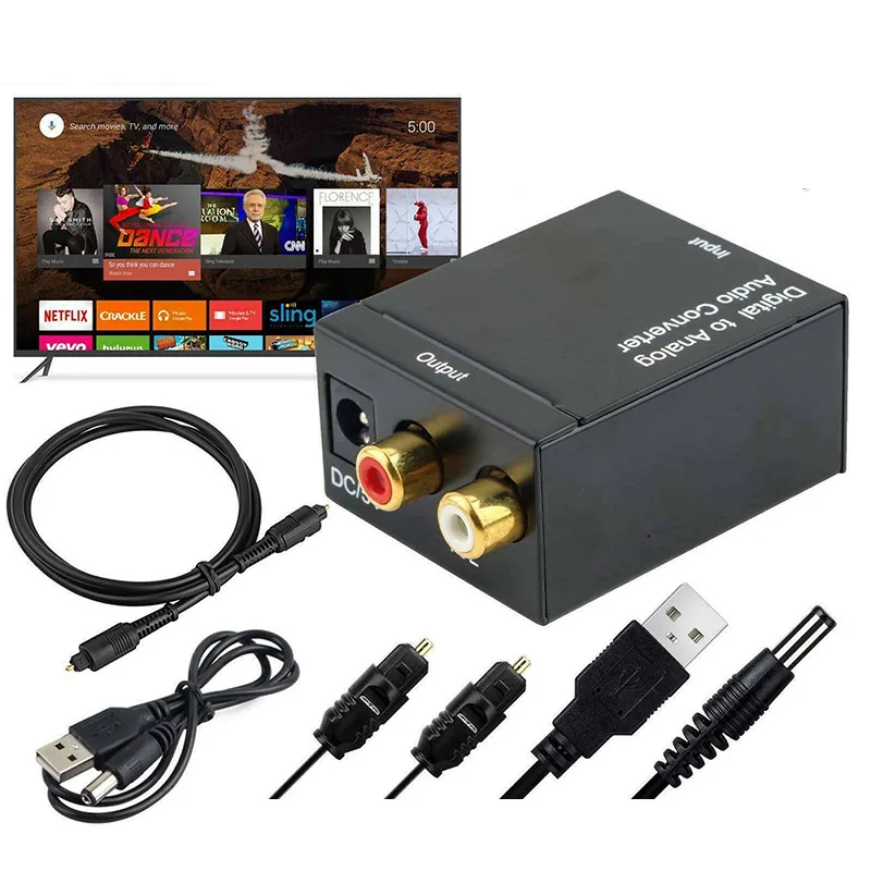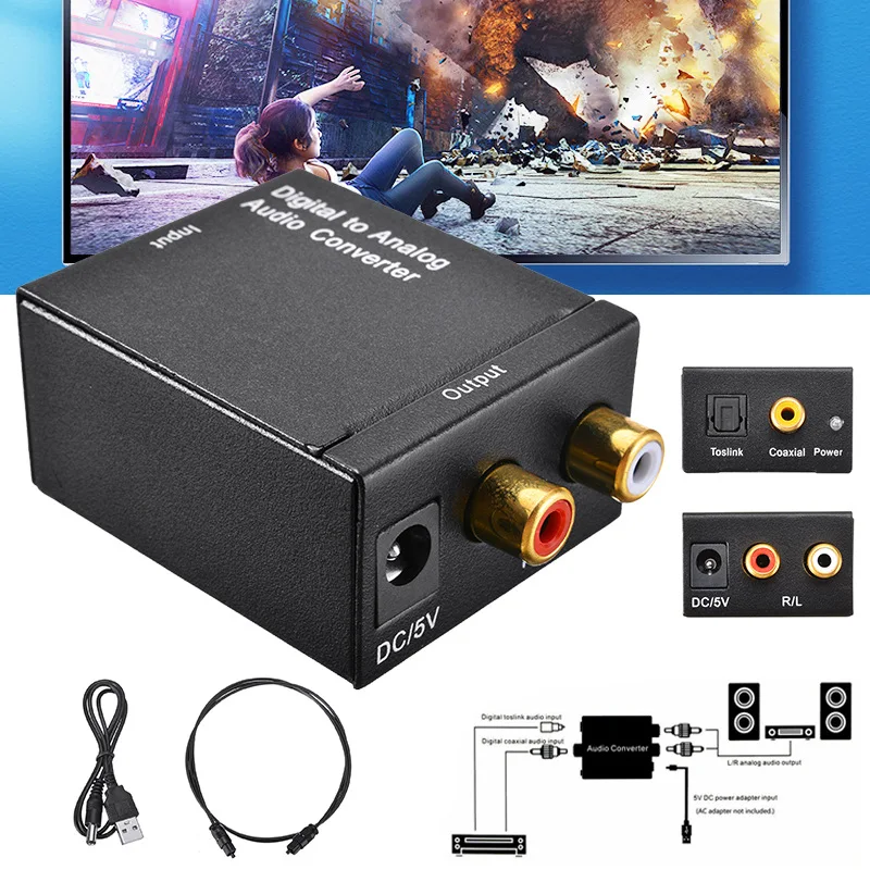 Convertidor con puerto de alimentación DC 5V, salida R/L, para entrada de audio Toslink, entrada de audio coaxial digital