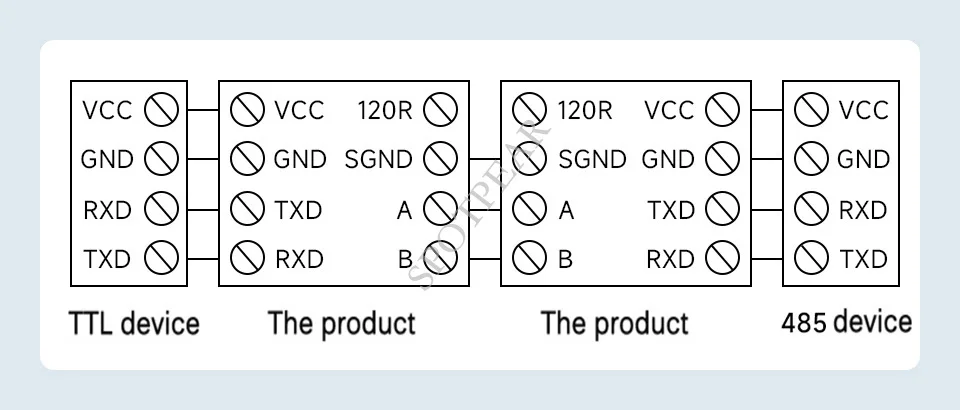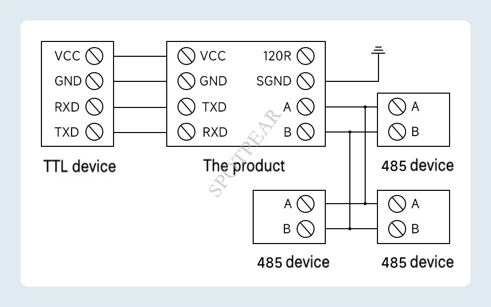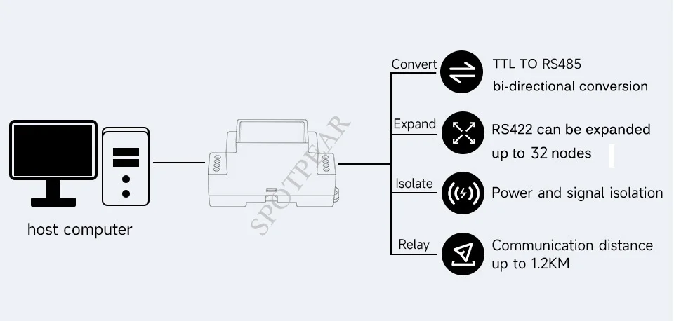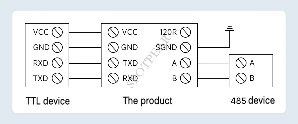 La señal TTL/RS485 se puede convertir en una señal RS485 diferencial, admite comunicación dúplex completa