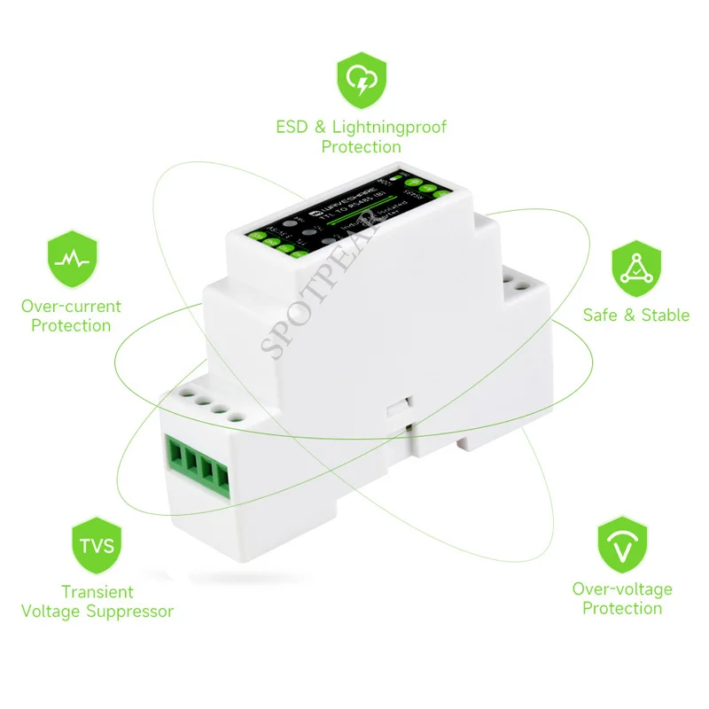 Energía integrada y aislamiento de señal, proporciona un voltaje aislado estable, alta fiabilidad y fuerte antiinterferencia. TVS integrados (supresor de voltaje transitorio), suprime eficazmente las sobretensiones y el voltaje de pico transitorio en el circuito, a prueba de rayos y antielectrostático. Fusible reiniciable a bordo y diodos de protección, asegura salidas estables de corriente/voltaje, proporciona protección contra sobrecorriente/sobretensión, mejora la resistencia a los golpes