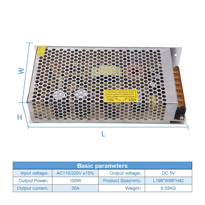 Convertidor SMPS cerrado CA/CC 110/220V CA a CCFuente de alimentación de Modo Conmutado de 5V 30A 150W