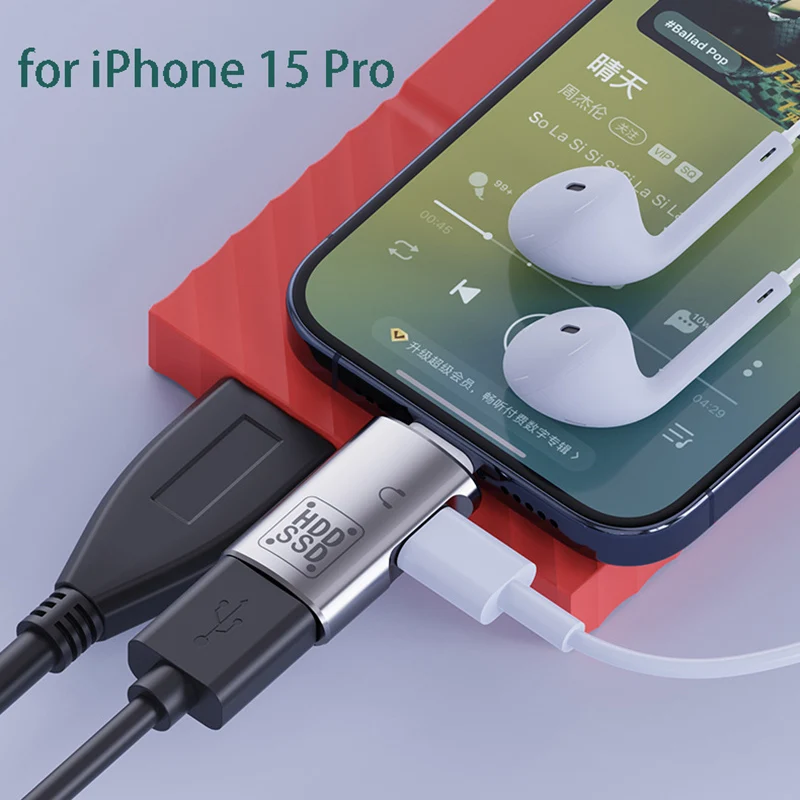Convertidor tipo C a USB3.0 para lectura de teléfono, disco USB, auricular Digital, transferencia de alta velocidad, adaptador OTG de Audio para iPhone 15, enchufe de memoria extensible