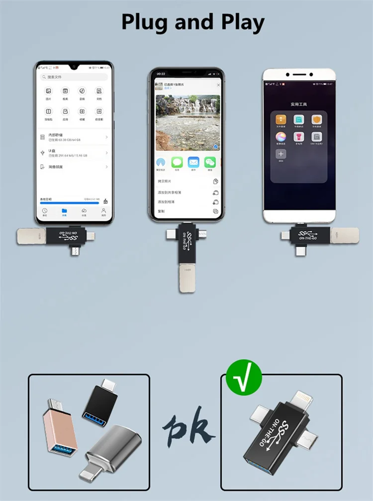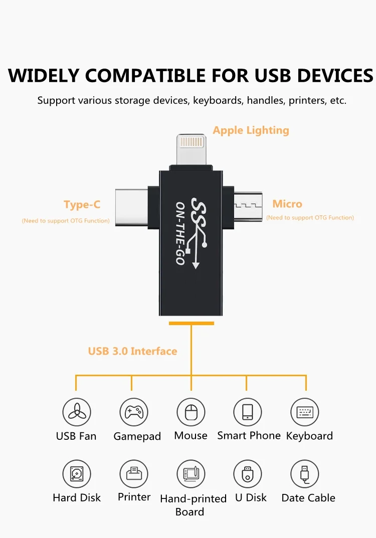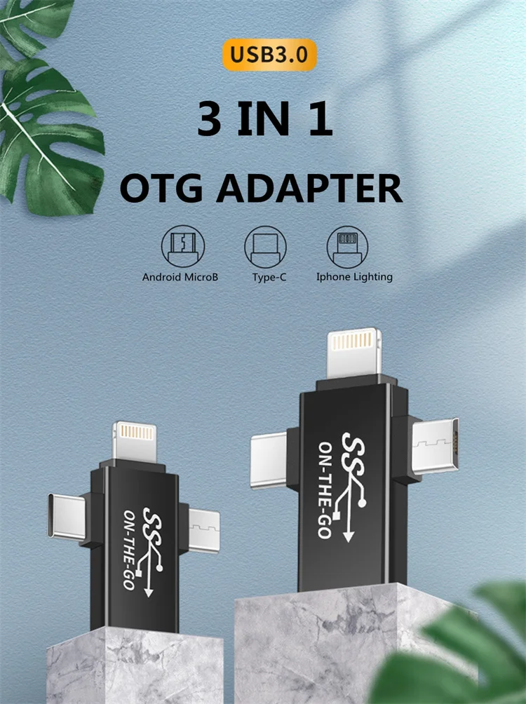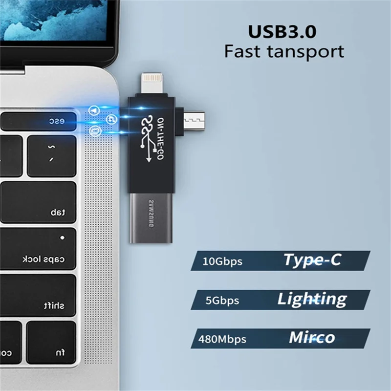 Comprar Convertidor tipo C/Mirco/Lighting a USB3.0, transmisión de datos para teléfonos Android/apple/Huawei a unidad flash Usb, ratón