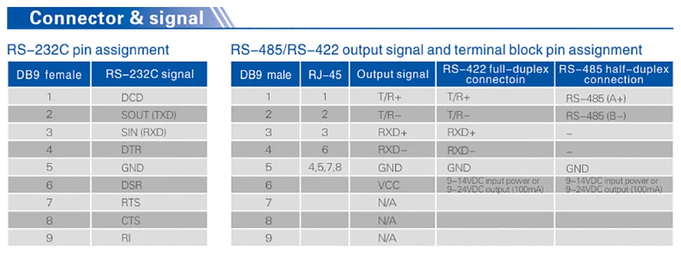 ● Conector: entrada hembra DB9 de 1/2, salida macho DB9 de 2/2/RS485 de 2, 2/2/2/2/2