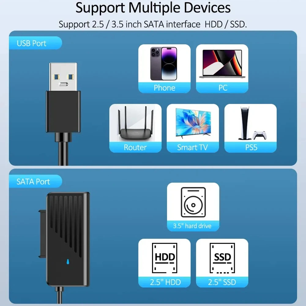 Comprar Convertidor USB 3,0 a SATA 2,5/3,5 pulgadas M.2 NGFF SATA SSD adaptador externo de disco duro SATA III adaptador de disco duro para ordenador portátil