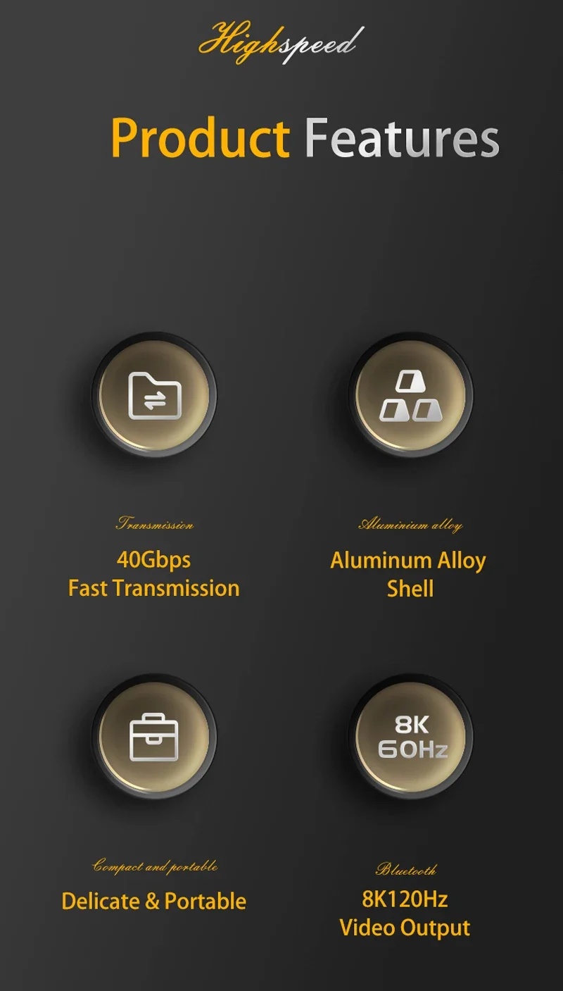 【Transferencia de datos de 40 Gbps】Totalmente estándar USB 4 Gen 3 y proporciona datos de sincronización de súper velocidad a un máximo de 40 Gbps,