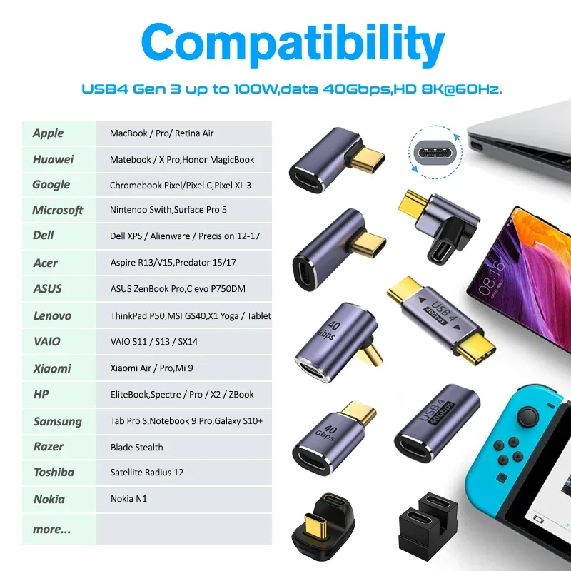 2.Este conector adaptador USB de 4 Gen 3 admite salida de vídeo máxima de 8 K, transferencia de datos de 40 Gbps y carga rápida PD de 100 W, pero la velocidad real depende de su dispositivo host usado, cable de conexión y dispositivo de destino.Asegúrese de que admitan las características anteriores.