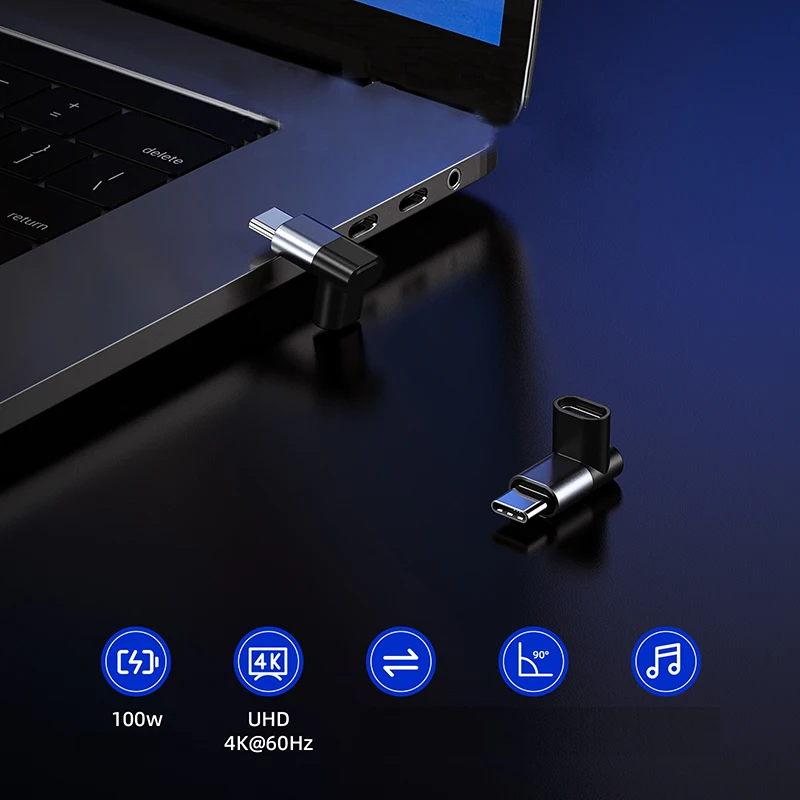 Convertidor tipo C USB C PD100w Enchufe de carga 4K60HZ 20Gbps Extensor de transferencia para interruptor para iPad Steam Deck Teléfono móvil Laptop Adaptador de codo macho a hembra
