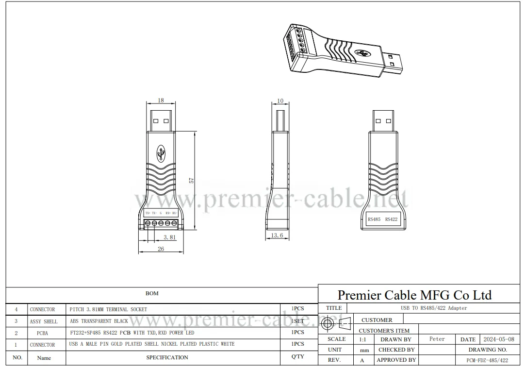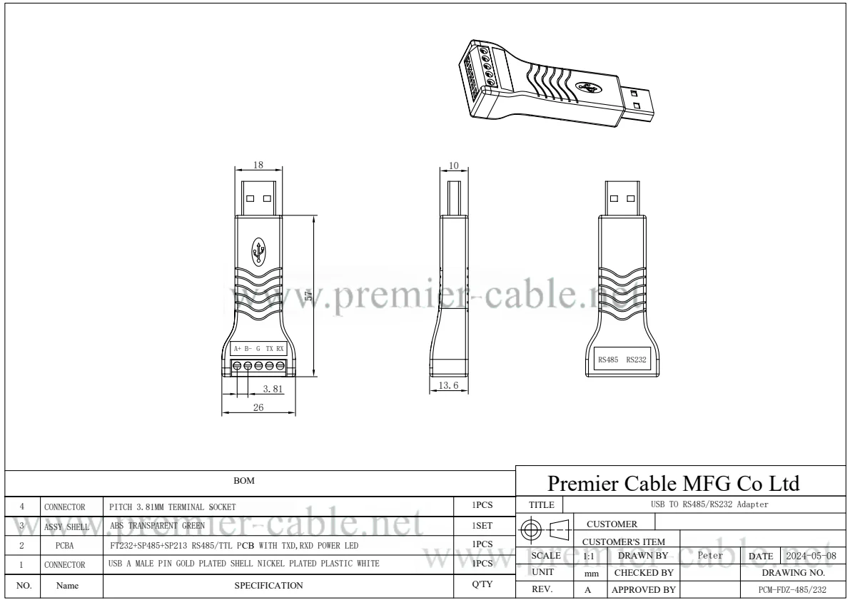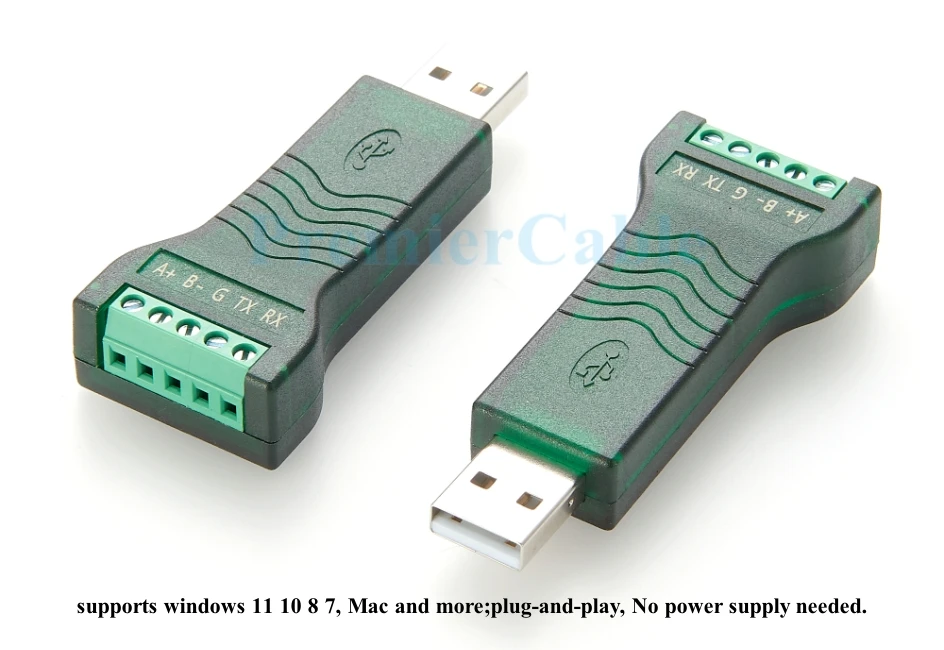 Convertidor USB A RS232 RS485 de la siguiente manera: