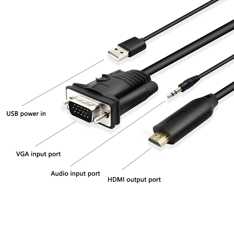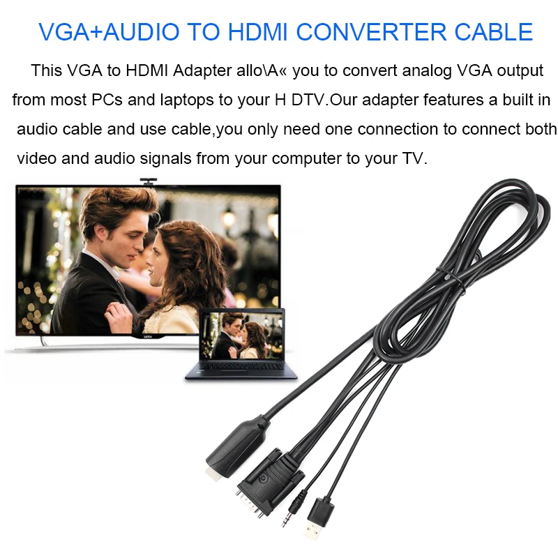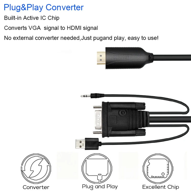 Convertidor VGA a HDMI de 1,8 m con Cables adaptadores de Audio 1080P para proyector de Monitor HDTV PC PS3