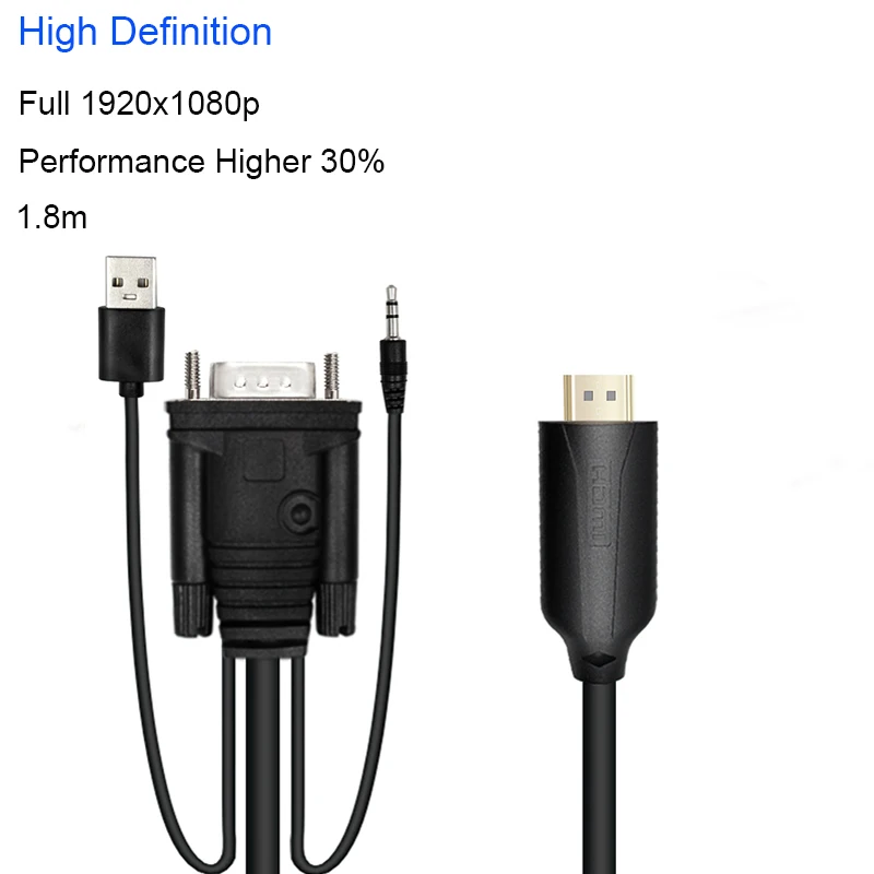 Comprar Convertidor VGA a HDMI de 1,8 m con Cables adaptadores de Audio para HDTV 1080P, Monitor, proyector, PC, PS3
