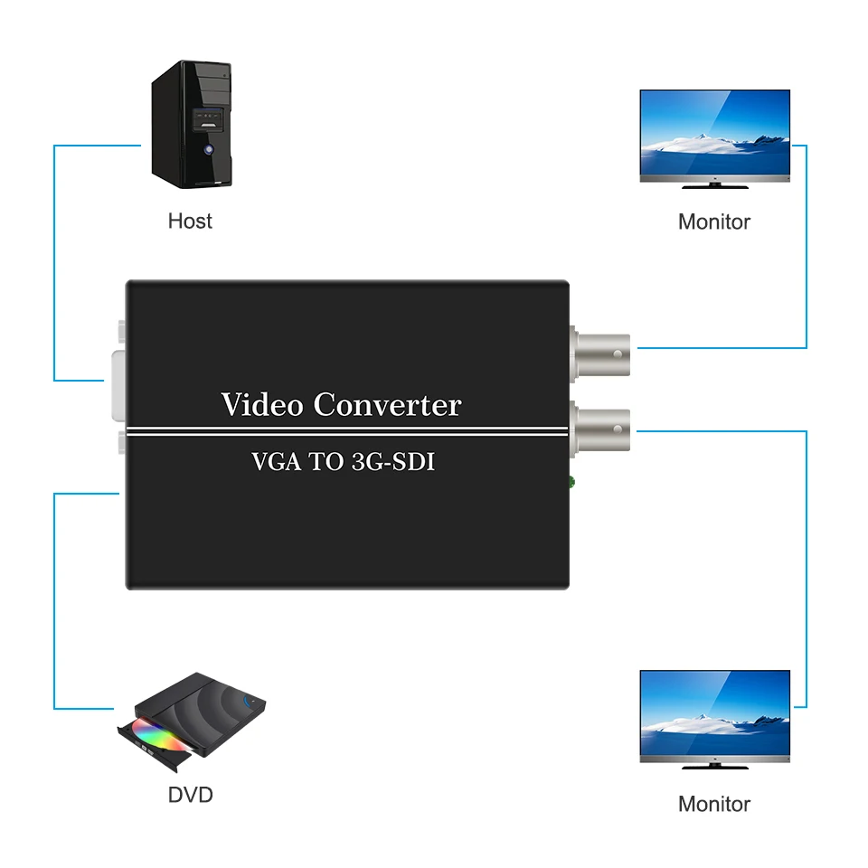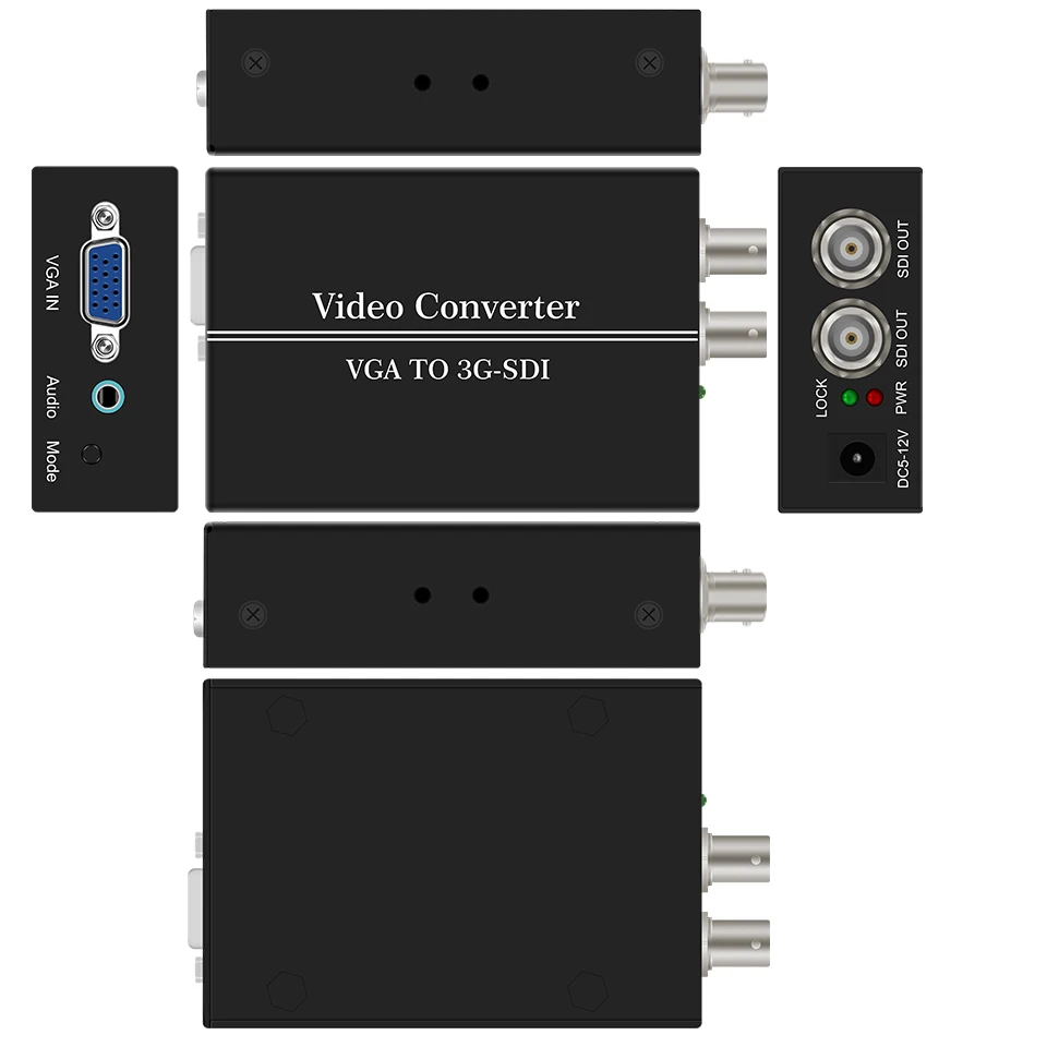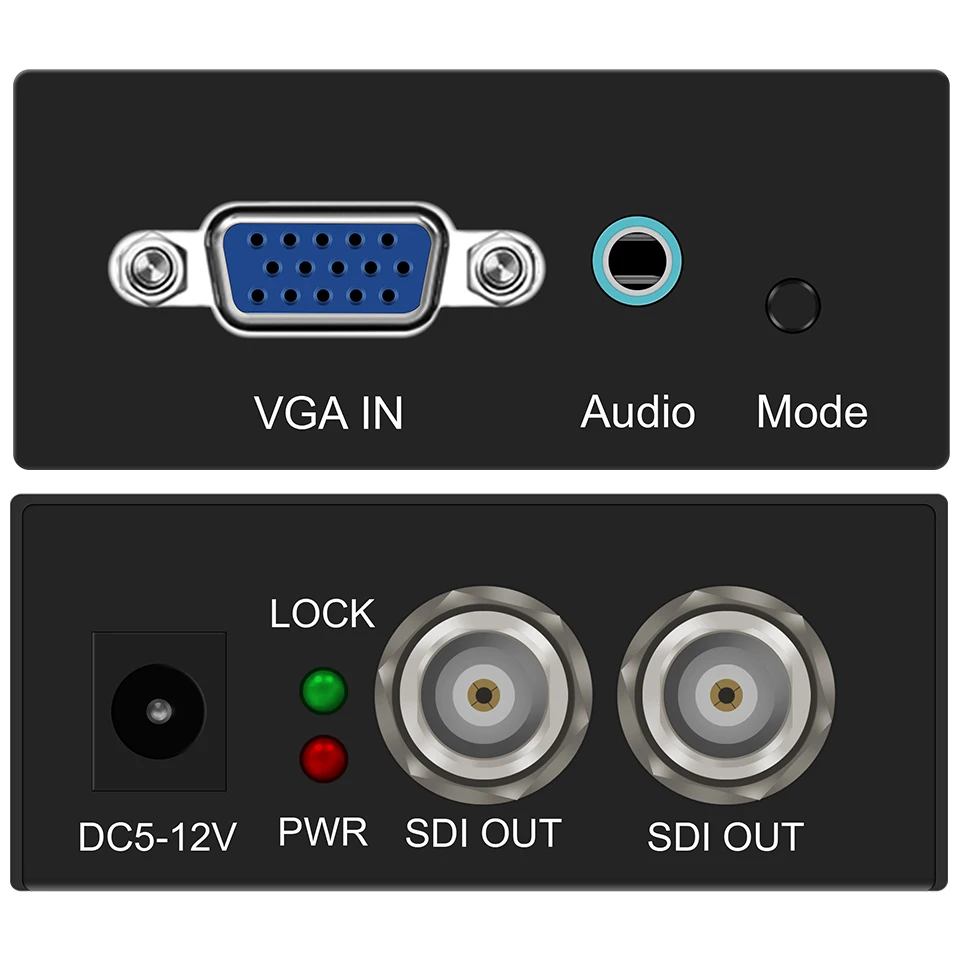 Convertidor VGA a SDI, convertidor de vídeo SDI de transmisión con audio de 3,5mm, convertidor de vídeo de Audio VGA a 2 SDI para PC a TV, computación HD