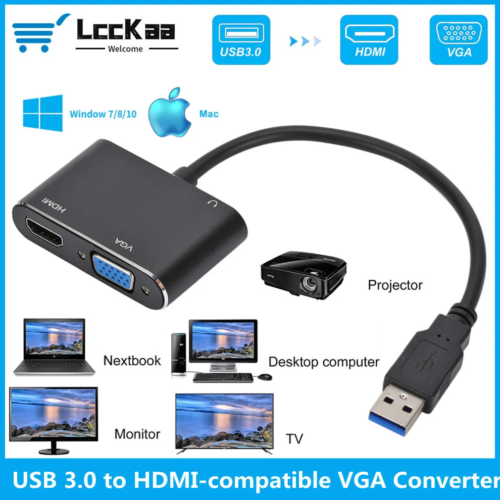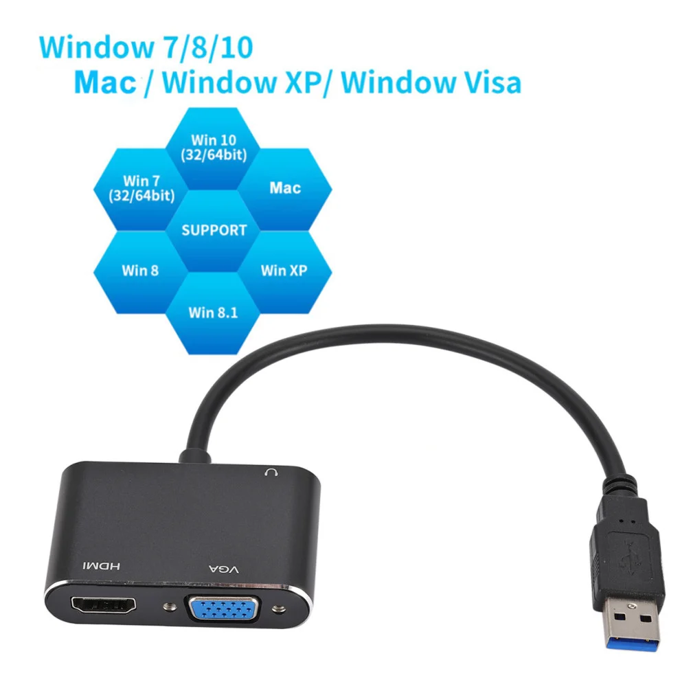 Comprar Convertidor VGA compatible con USB 3,0 a HDMI, salida Dual 2 en 1, Cable adaptador USB a VGA HDMI HD 1080P para Mac OS Windows 7/8/10