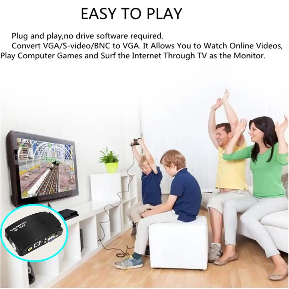Comprar Convertidor de vídeo compuesto s-video RCA AV a VGA, convertidor AV/RCA a VGA para TV a PC con adaptador de corriente o cable de CC