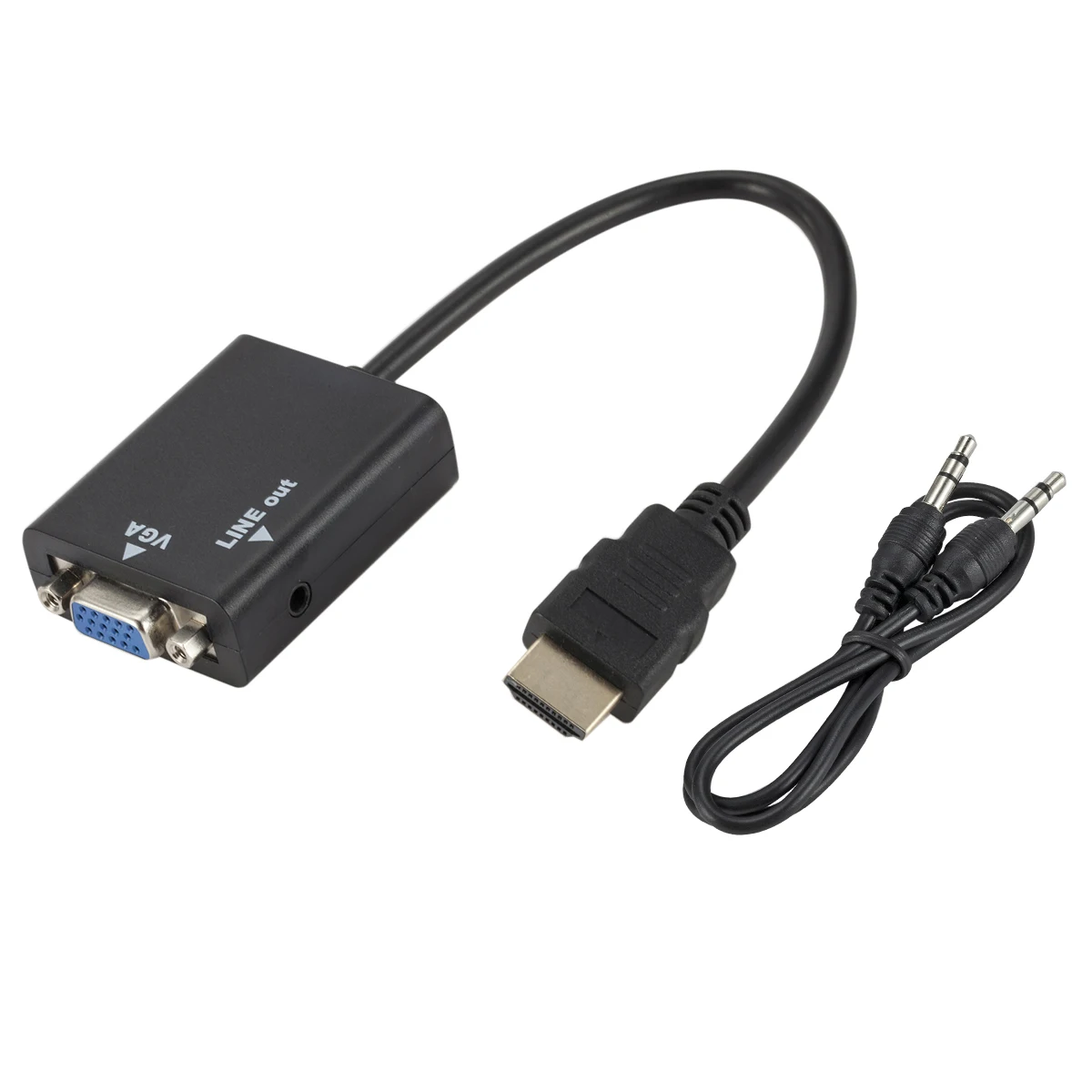 Comprar Convertidor de vídeo HDMI compatible con VGA, adaptador Digital a analógico HD 1080P con Cable de Audio de 3,5 Mm para PC, portátil, proyector HDTV