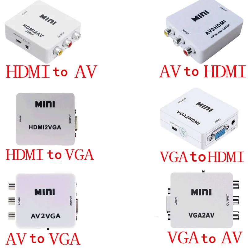 Comprar Convertidor de vídeo Mini HD AV a VGA, convertidor de vídeo a AV2HDMI-compatible VGA, convertidor de Audio de 3,5mm a PC HDTV