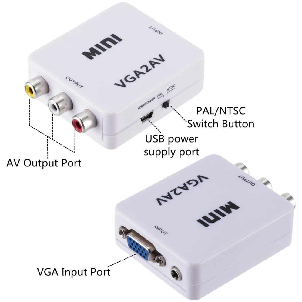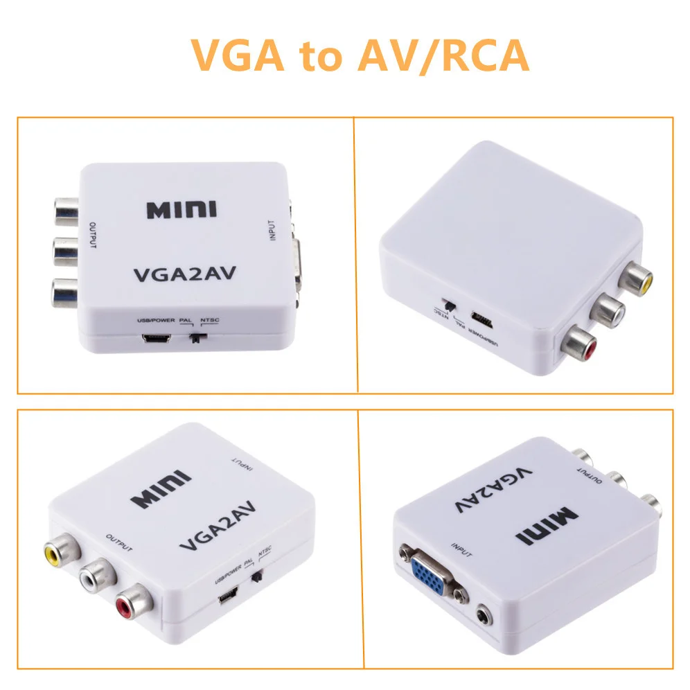 El convertidor de VGA a AV se utiliza para convertir varias imágenes de ordenador de 640x48 0/60 fotogramas a 1920x108 0/60 fotogramas. Proporciona un formato de salida compuesto. Se utiliza para aplicaciones como videoconferencias, cine en casa, sala de conferencias o conversión de imágenes de ordenador de TV.