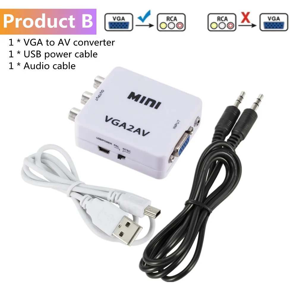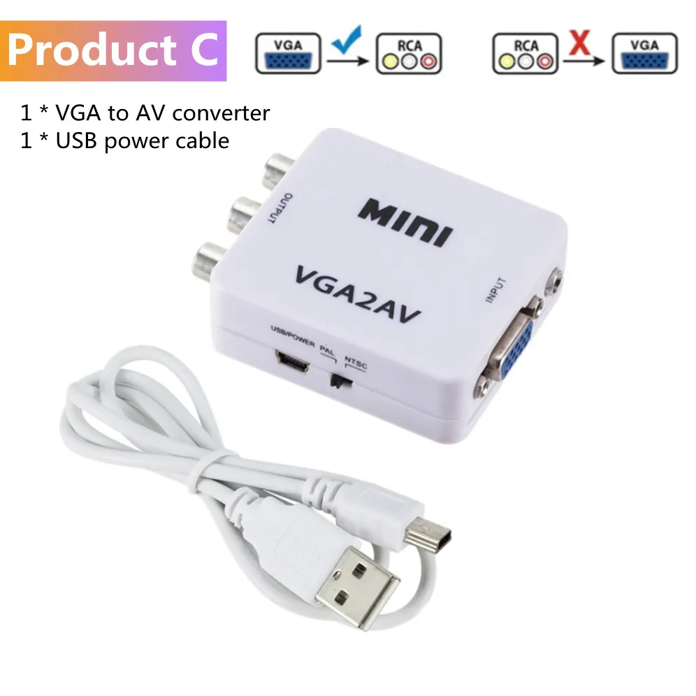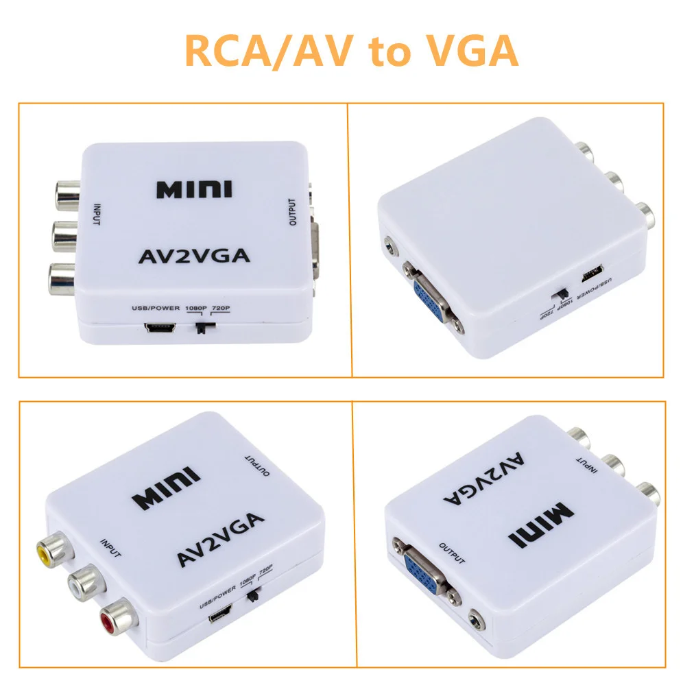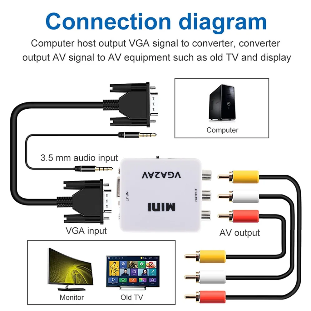 Comprar Convertidor de vídeo RCA AV a VGA 1080P HDTV, adaptador VGA a AV RCA con Cable de Audio de 3,5mm para ordenador portátil, TV Box, Monitor de PC