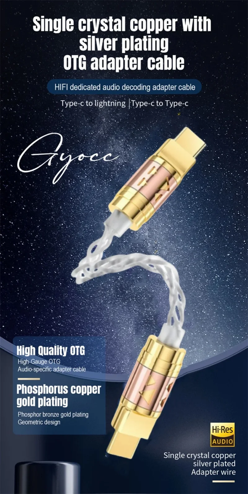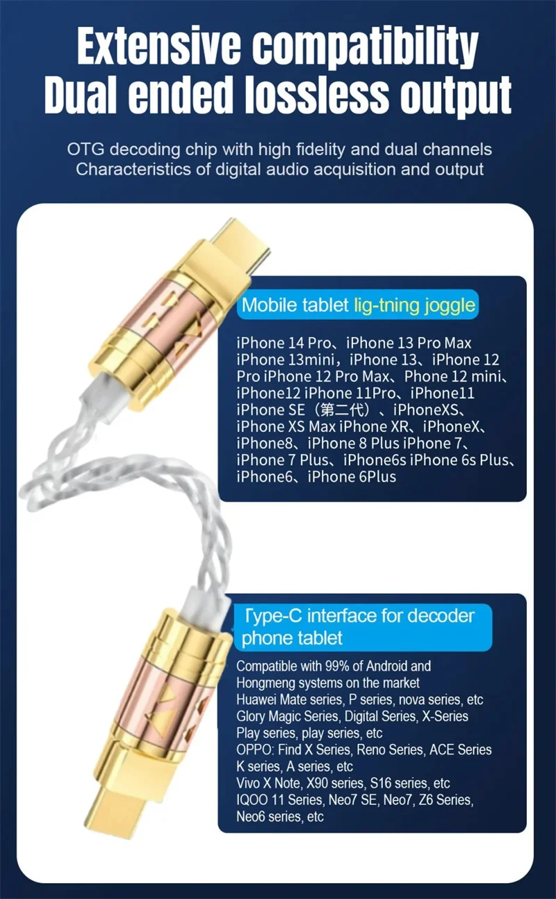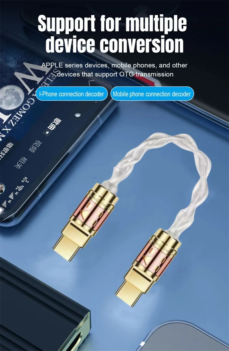 Convertidores de Audio de Cable USB tipo C decodificación OTG, adaptador de auriculares Chapado en plata y cobre de un solo cristal de 4 núcleos, convertidor USBC