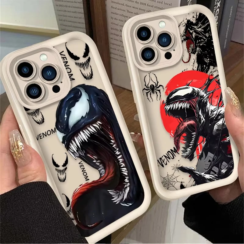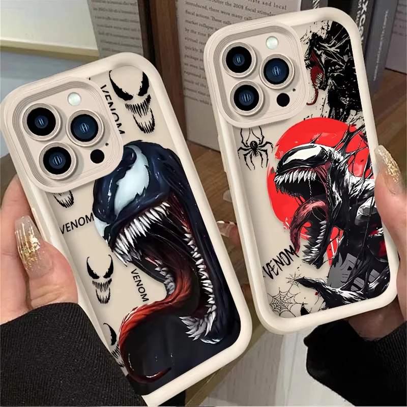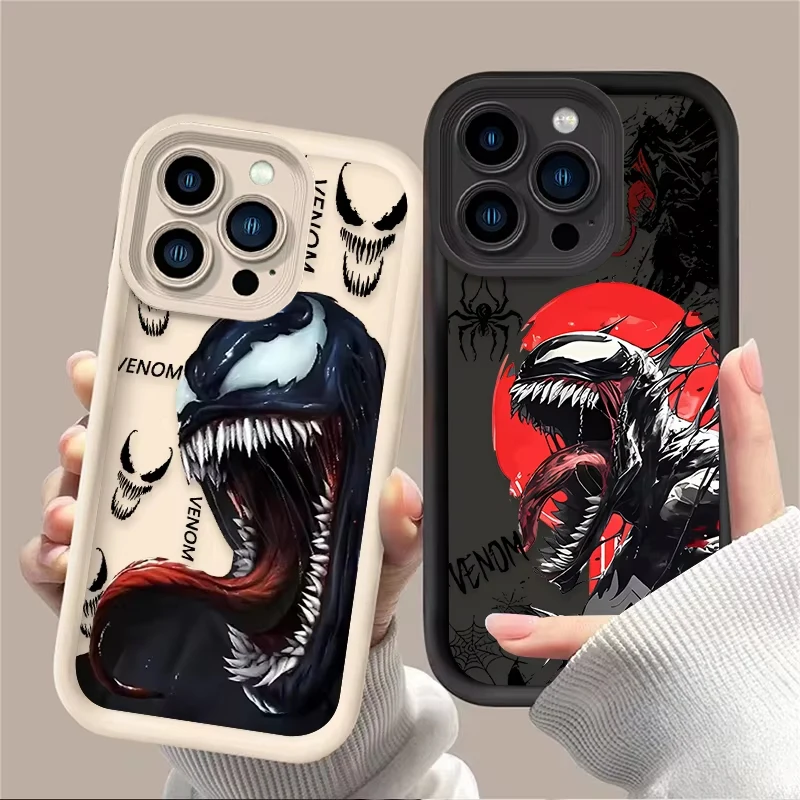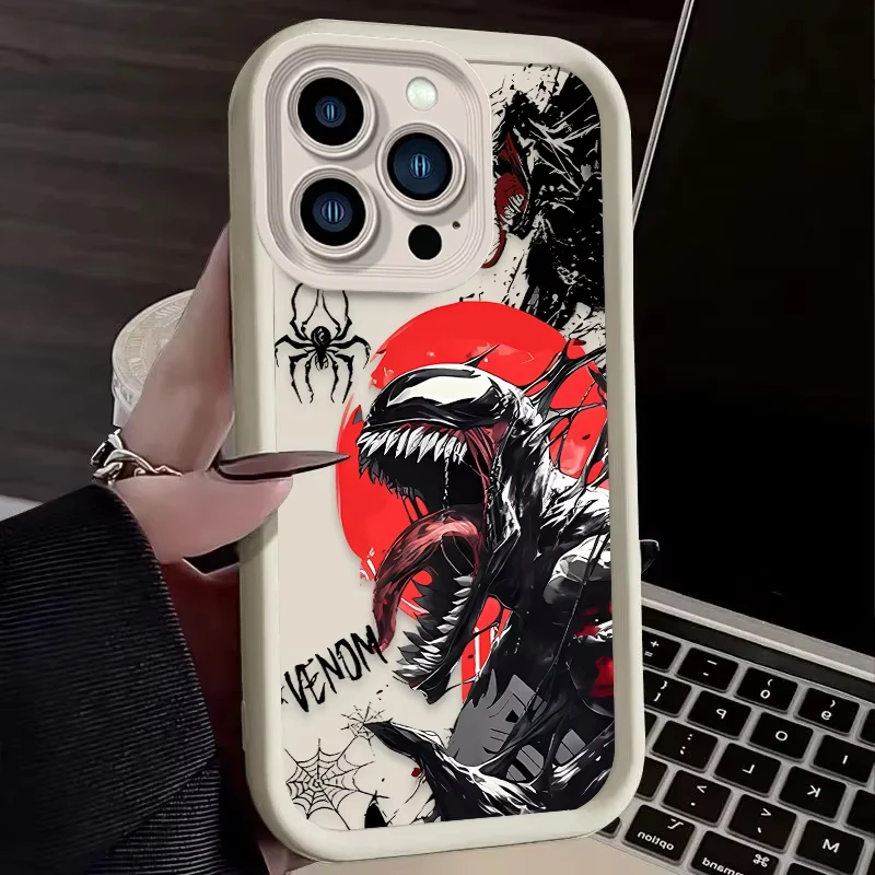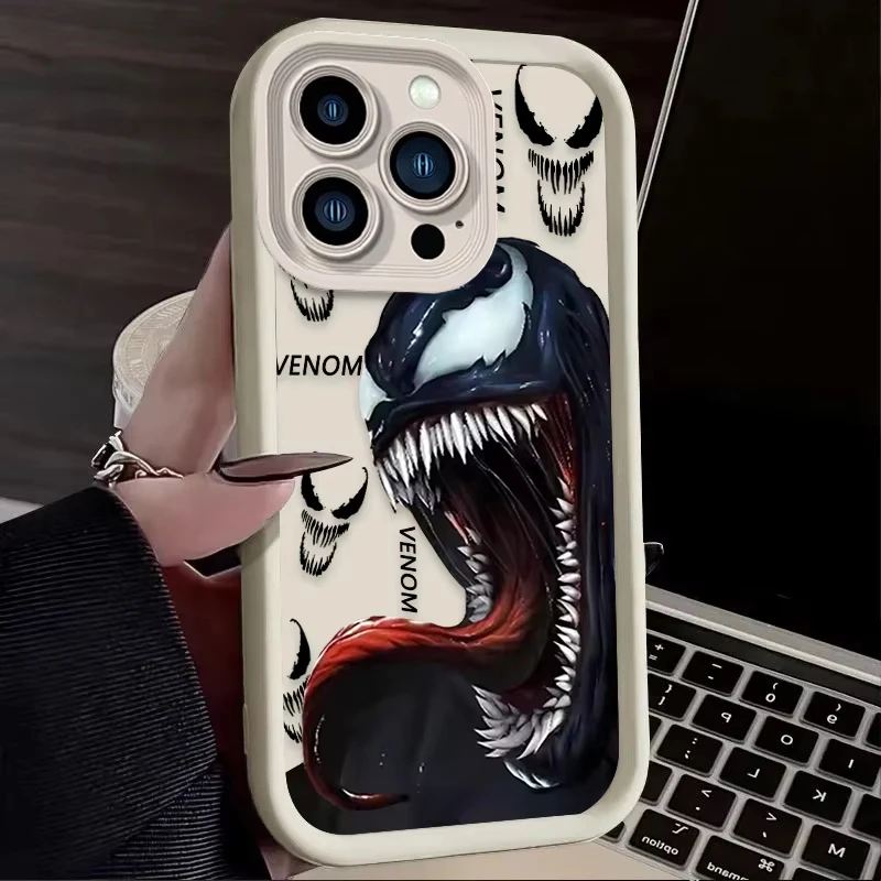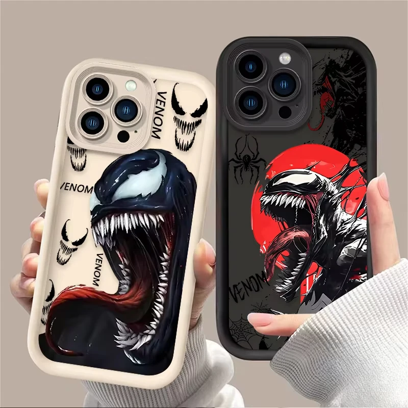 Comprar Cool Comic Marvel Venom funda de teléfono para iPhone 16 15 14 13 12 11 Pro Max 7 8 Plus XR XS Max funda trasera suave de silicona a prueba de golpes