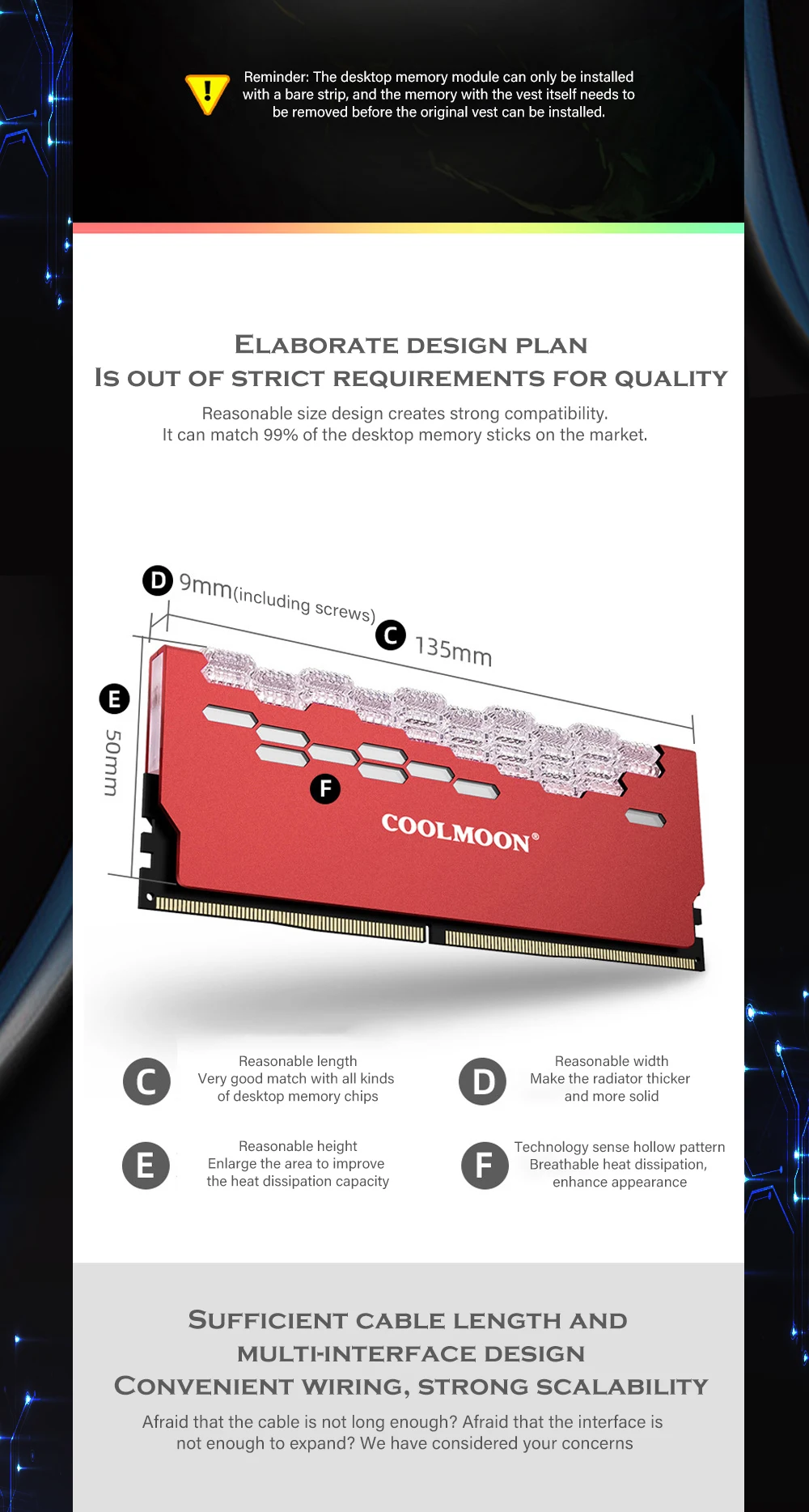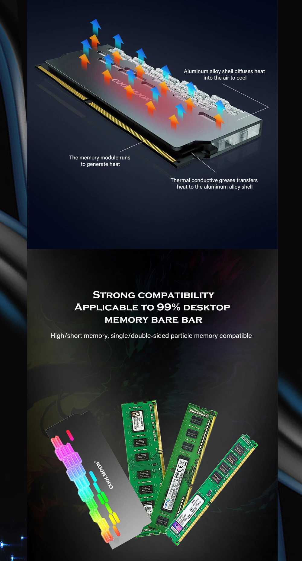 Cool Moon-disipador de calor para ordenador de escritorio, Enfriador de memoria RAM RGB, chaleco de refrigeración, radiador