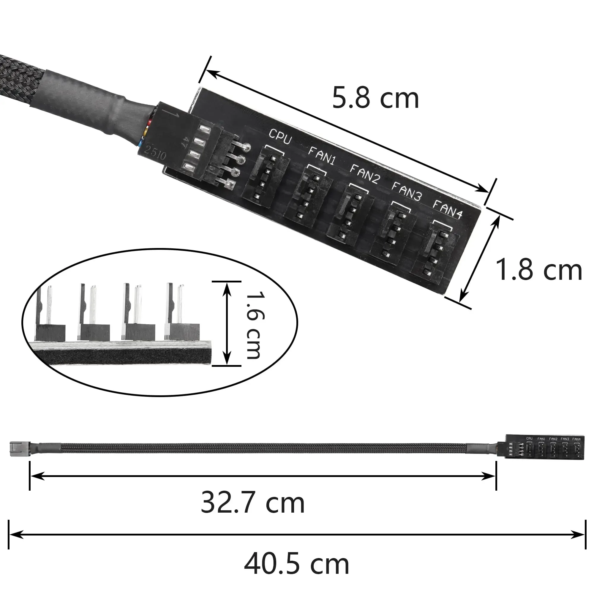 Nombre del producto: Cable de extensión de ventilador PWM con funda negra de 1 a 5