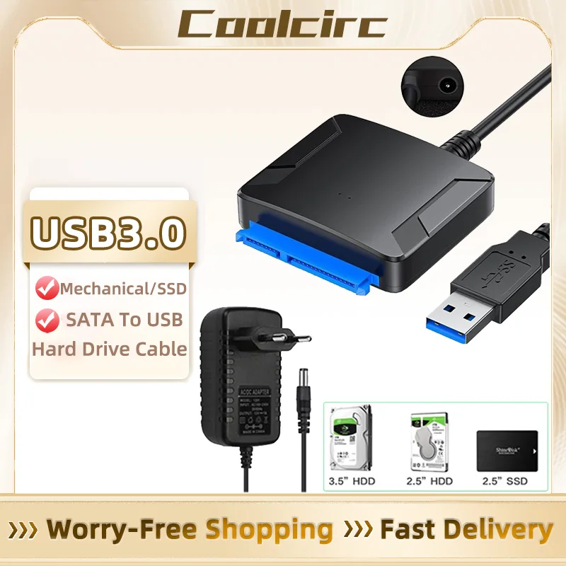 Comprar Coolcirc USB 3,0 a SATA Cable SATA III Adaptador de disco duro Convertidor para disco duro HDD SSD de 2,5 "3,5" con adaptador de corriente