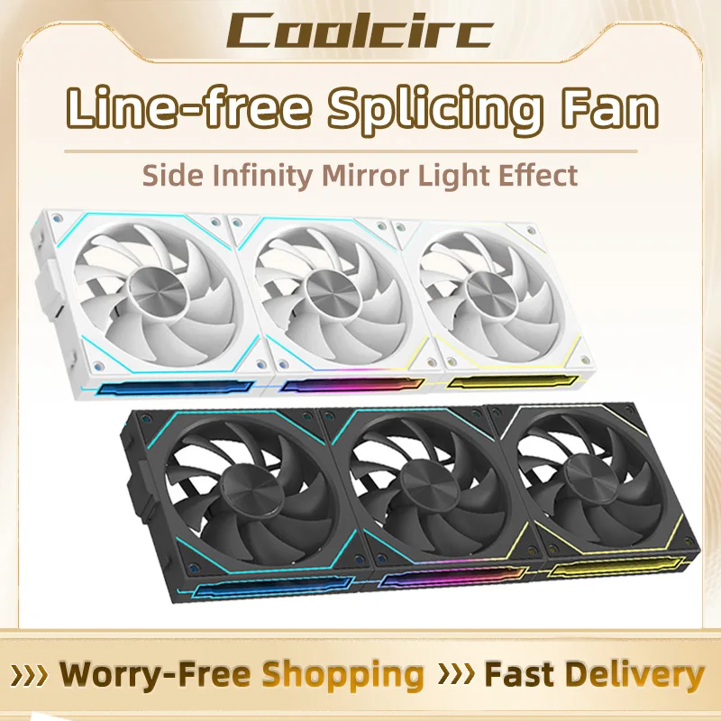 Coolcirc ventilador con cubierta de PC 120mm diseño de espejo infinito empalme sin línea ventilador de refrigeración ARGB 4PIN PWM 800-1800RPM ventilador enfriador de caja