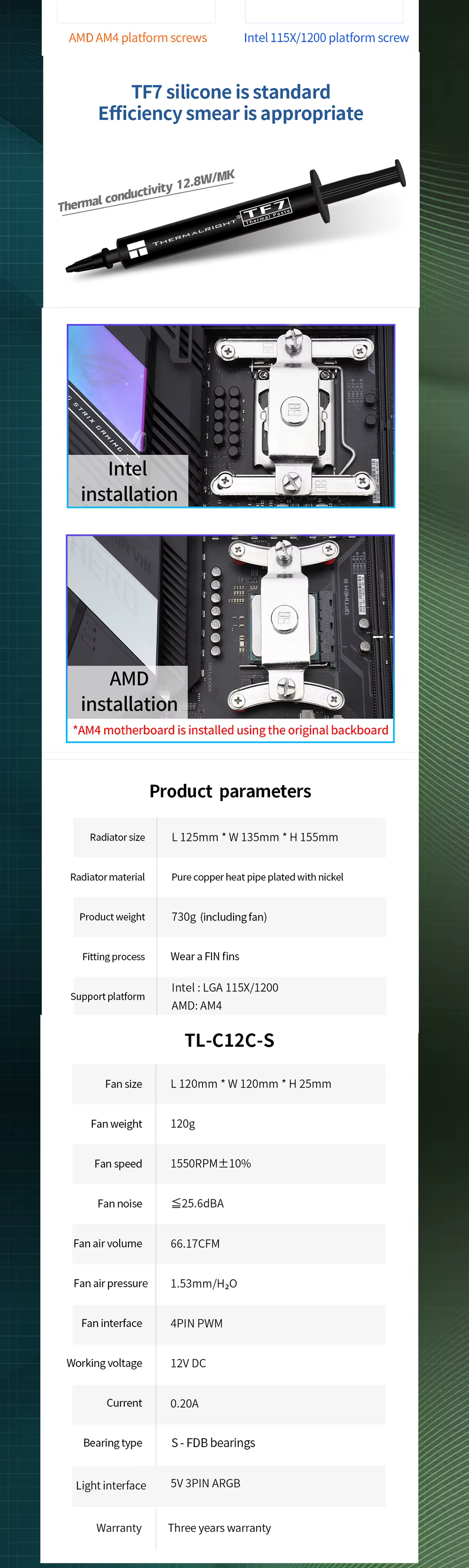 Cooler de CPU Thermalright Towers para Inte Inte115X/1200 AMD AM4 120mm 4 pines PWM ventilador de refrigeración para PC de escritorio radiador 3 pines 5V