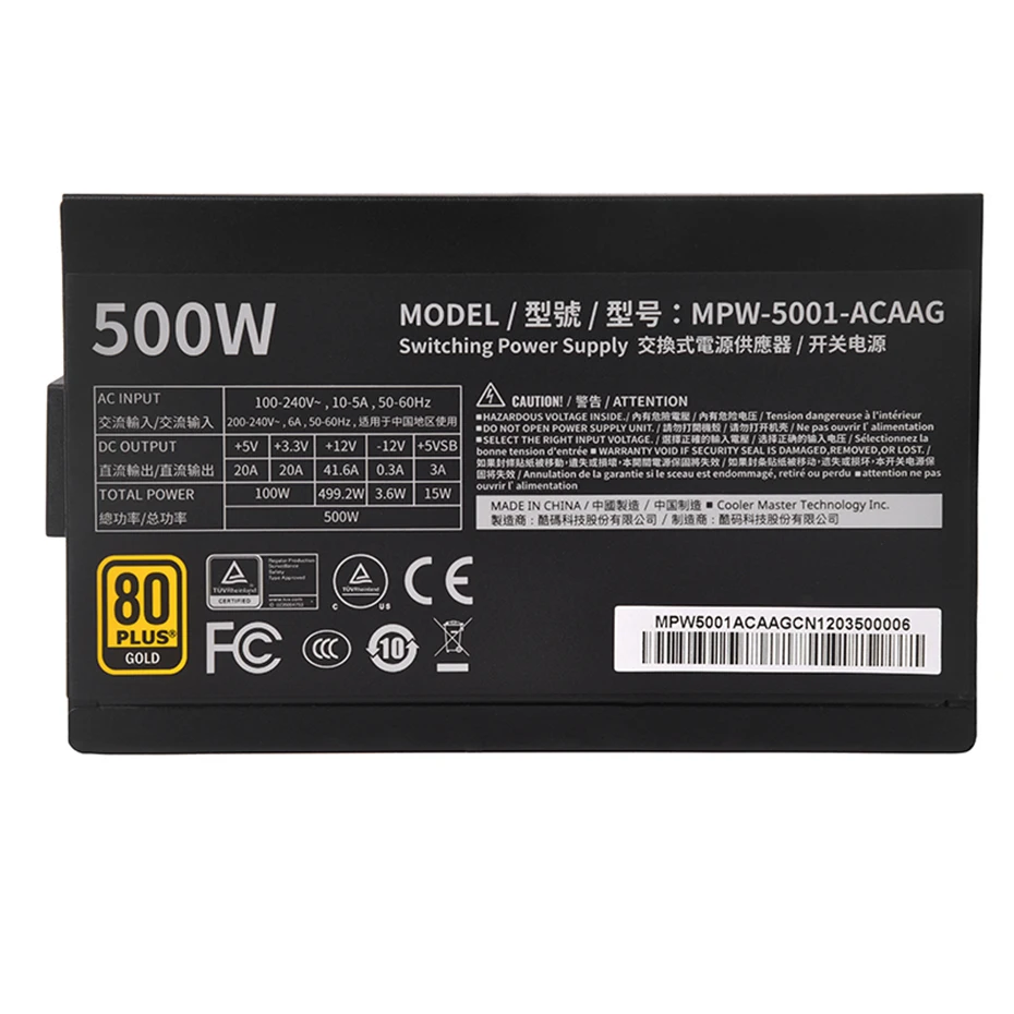 Comprar Cooler Master-fuente de alimentación dorada G500/G600/G700 para juegos de ordenador, 500/600/700 vatios, 12V, CPU dual, interfaz de 8 pines con ventilador deslizante de 120mm