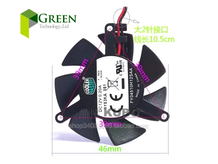 Comprar Cooler Master FY04510H12SAA, ventilador VGA de 46mm para MSI R6450 6570 6670 V5, Enfriador de tarjetas gráficas de 39mm, 12V 0.20A, 2 pines
