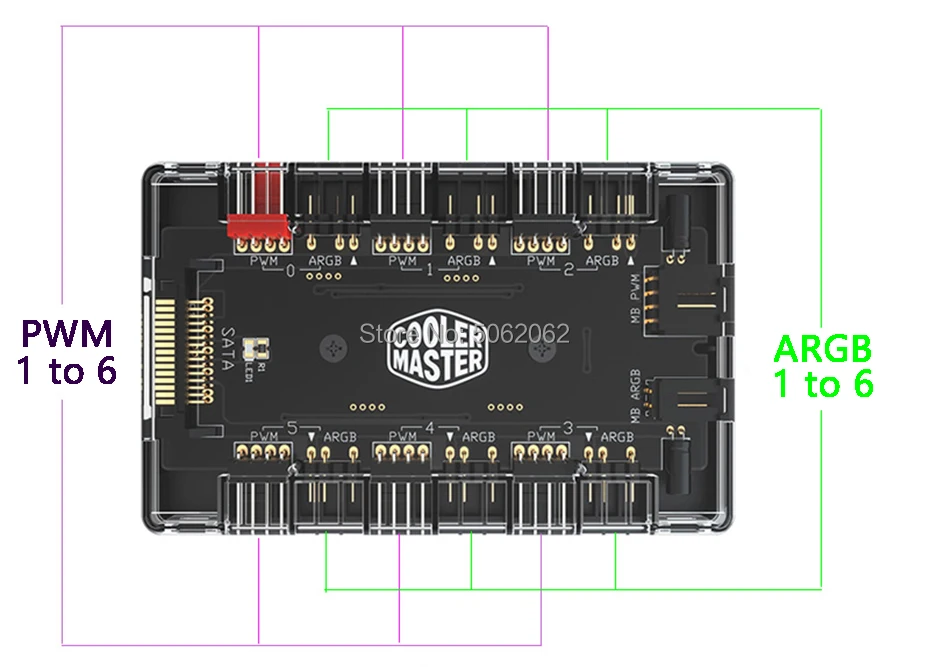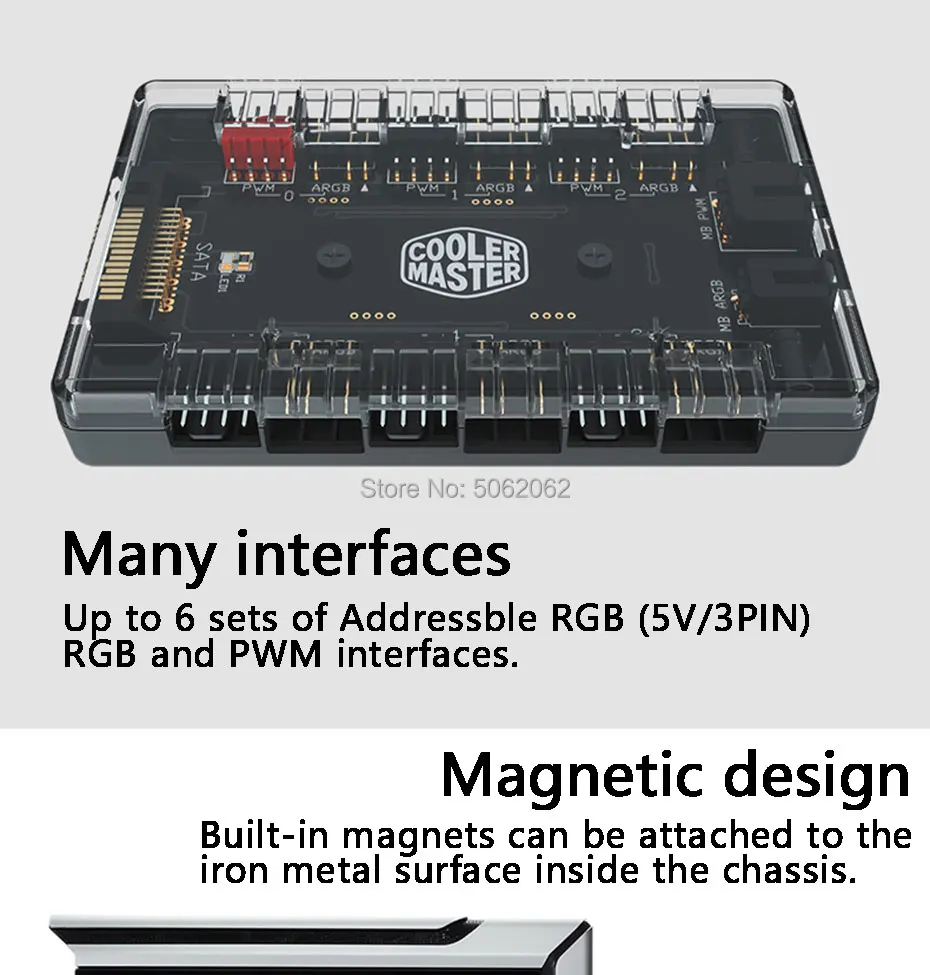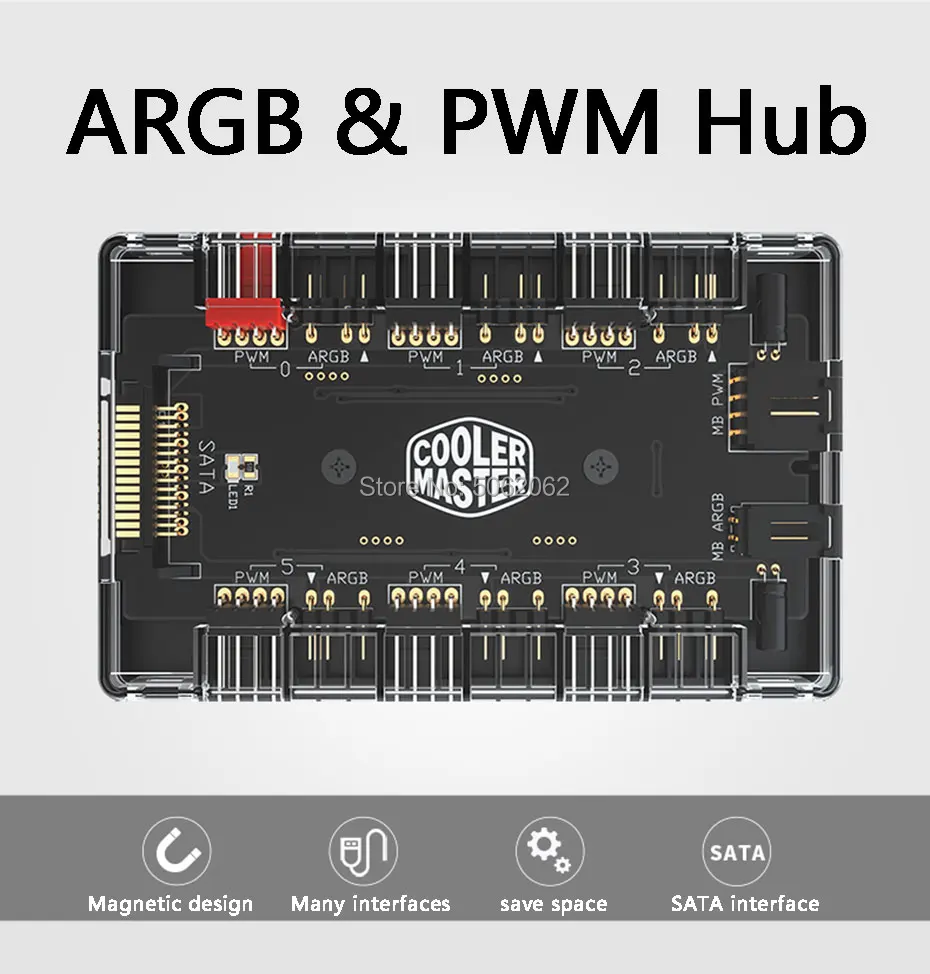 Cooler Master-Hub de alimentación SATA de 1 a 6, 5V/3 pines ARGB 12V/4 pines PWM, adaptador divisor multidireccional, ventilador de caja de CPU, atracción magnética