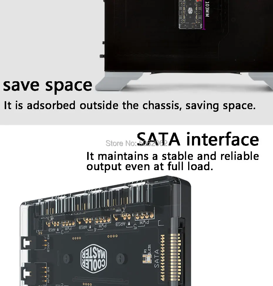 Comprar Cooler Master-Hub de alimentación SATA de 1 a 6, 5V/3 pines ARGB 12V/4 pines PWM, adaptador divisor multidireccional, ventilador de caja de CPU, atracción magnética