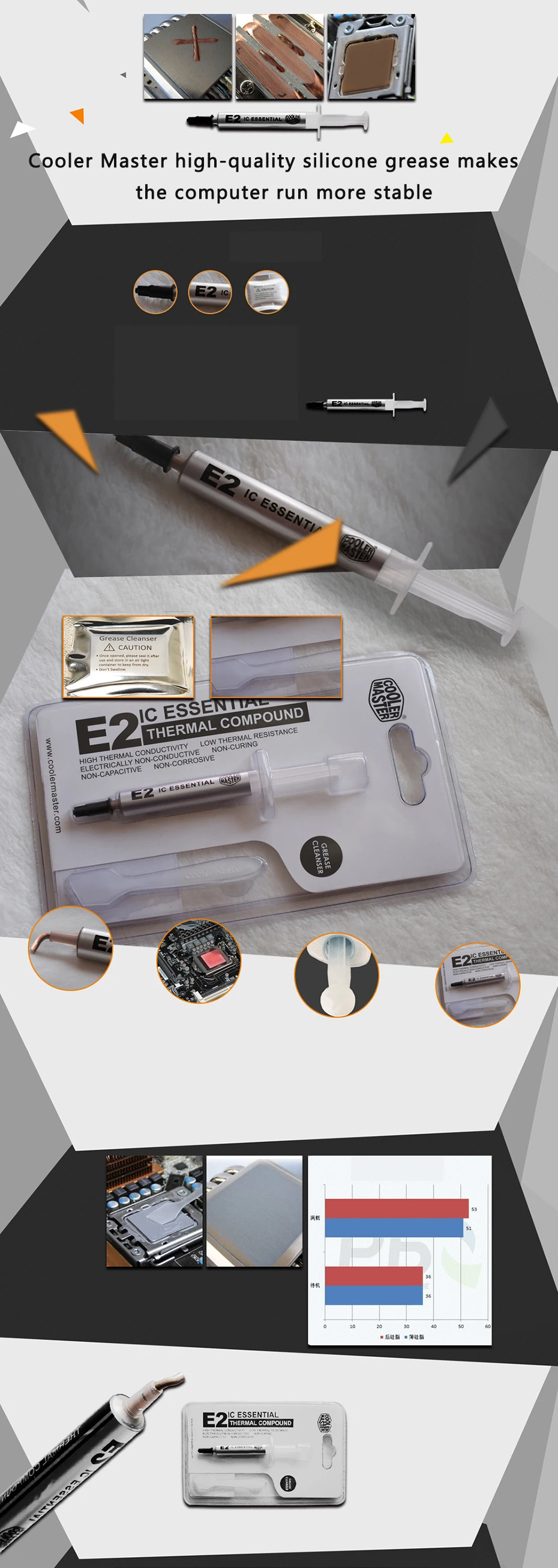La grasa de silicona de alta calidad de Cooler Master hace que el ordenador funcione más estable