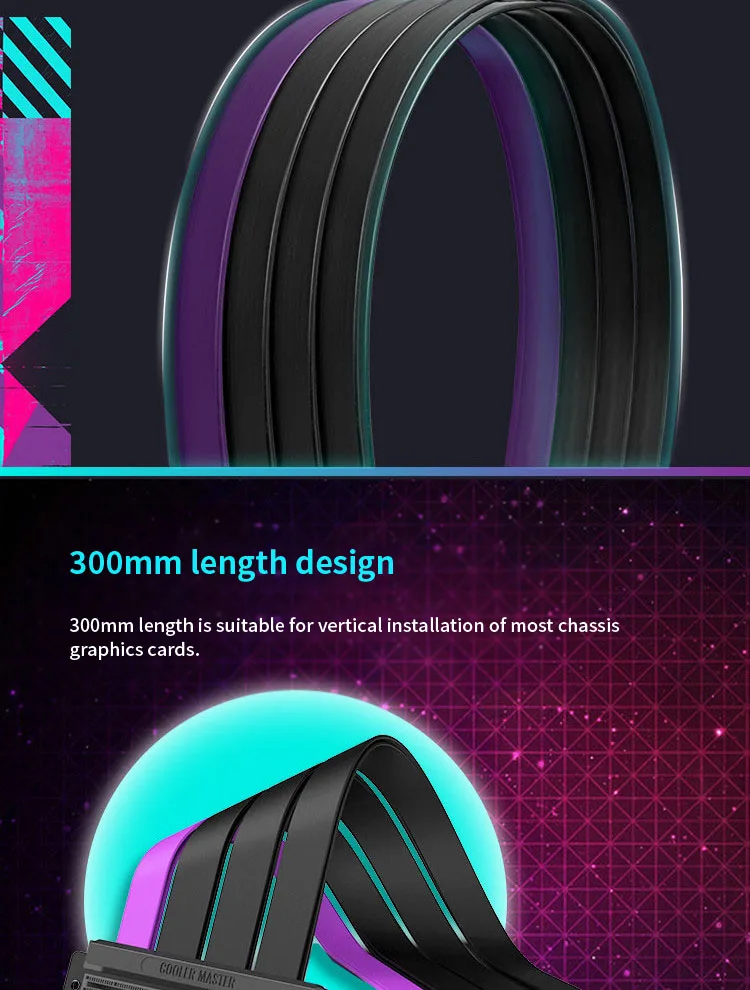 Cooler Master PCIE 4,0x16 Adaptador de tarjeta gráfica Cable de extensión Puerto PCI Express Expansión GPU Juego de cables de 300mm y 160mm