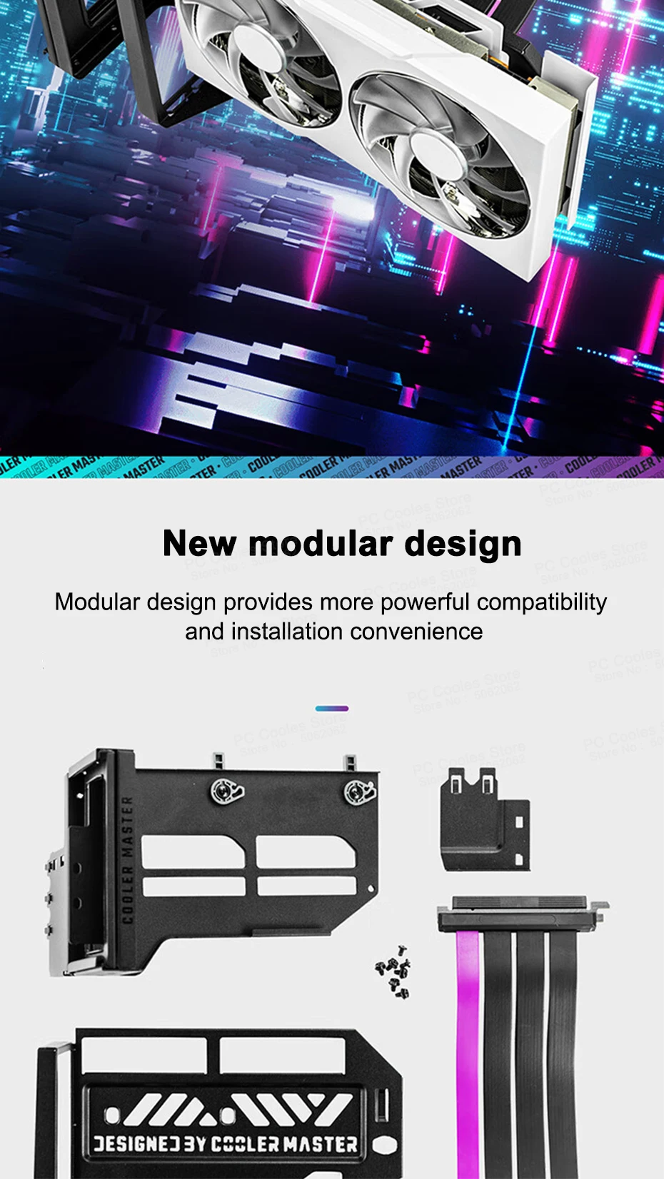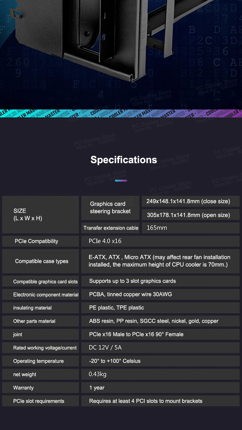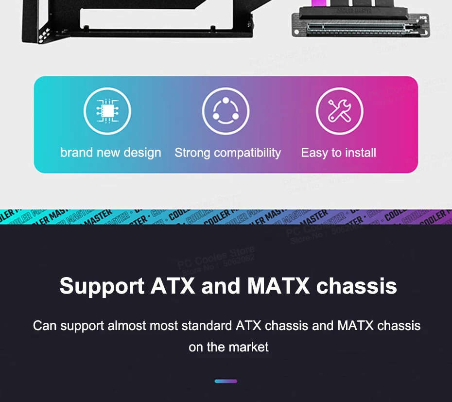 Comprar Cooler Master-Soporte de dirección para tarjeta gráfica PCI-E 3,0/PCI-E 4,0 X16, soporte Vertical Universal, soporte de GPU, Cable de extensión de 300MM