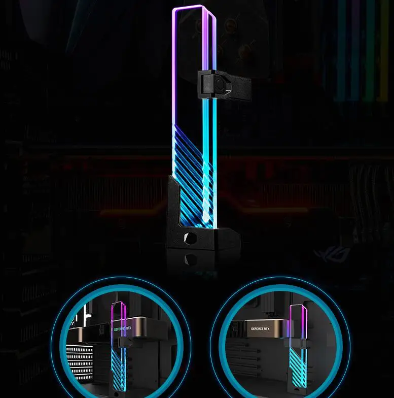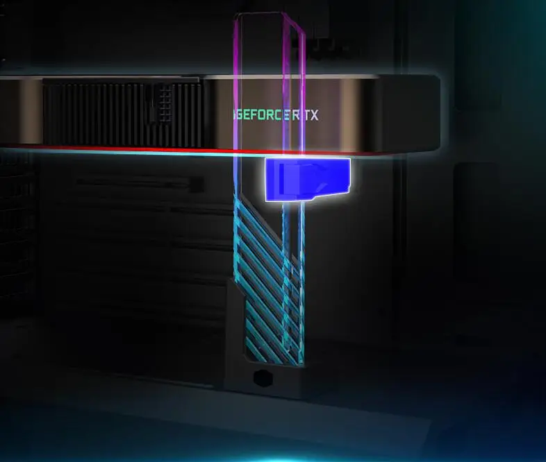 El soporte de tarjeta gráfica Xuanjing ARGB está hecho de material de vidrio templado de alta calidad, con líneas de procesamiento CNC en la superficie, que complementa el efecto de luz ARGB, brindando una magnífica fiesta visual.